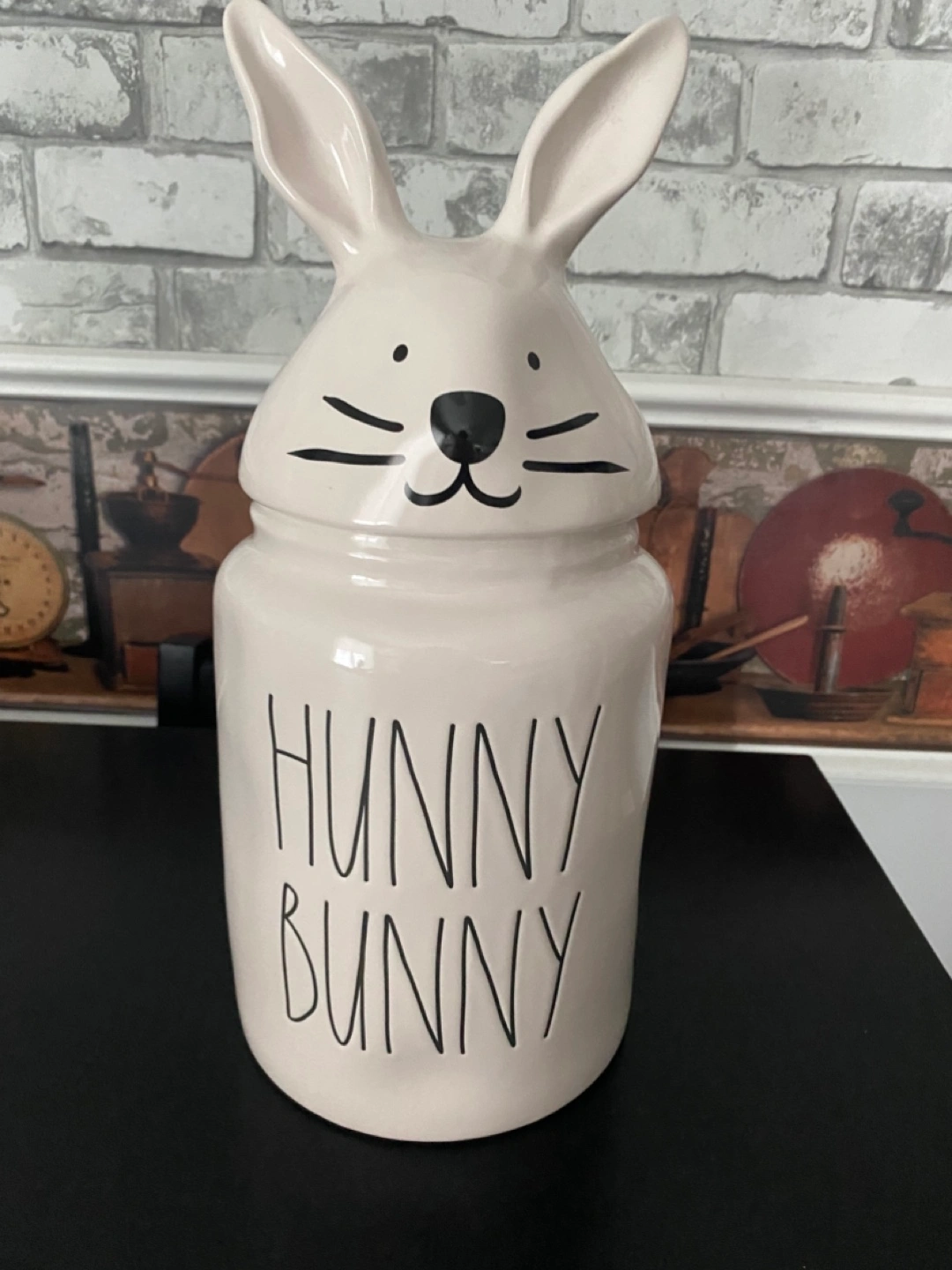 Adorable large ceramic canister. Features a bunny rabbit lid. Holds treats or other items. Dishwasher safe. Height 13” Diameter 6” Excellent Condition! Downsizing my collection! Cash and pick up only, Cawthra and Lakeshore area in Mississauga.