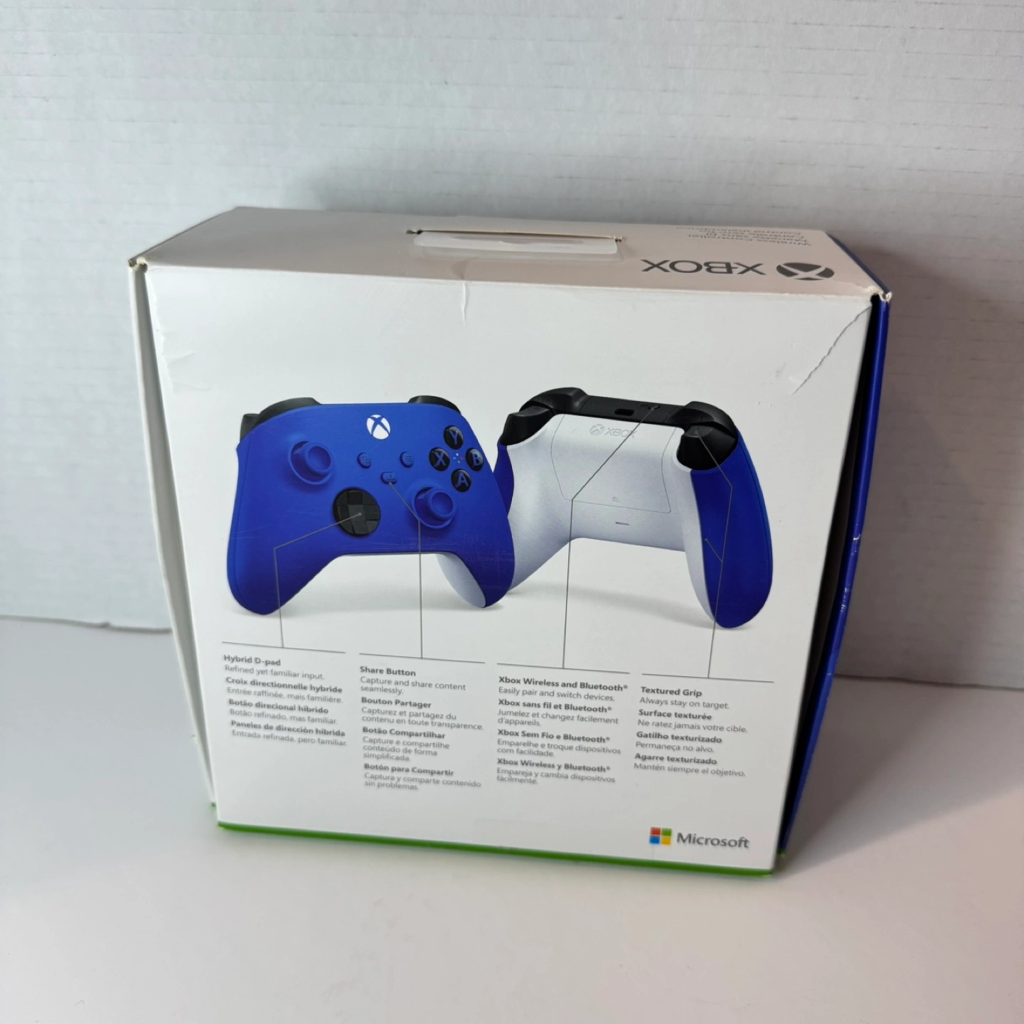 Like new - tested and no stick drift. The Microsoft Xbox Wireless Controller Series X/S/One in Shock Blue is a high-quality controller suitable for various gaming platforms. With a wireless range of 5-10 m, ergonomic design, and a built-in fan for cooling, this controller offers a comfortable and efficient gaming experience. Made of durable plastic material in a vibrant Shock Blue color, it is both stylish and functional. The controller features wireless connectivity and comes with a 1ft cable for charging, making it a convenient accessory for any gamer.