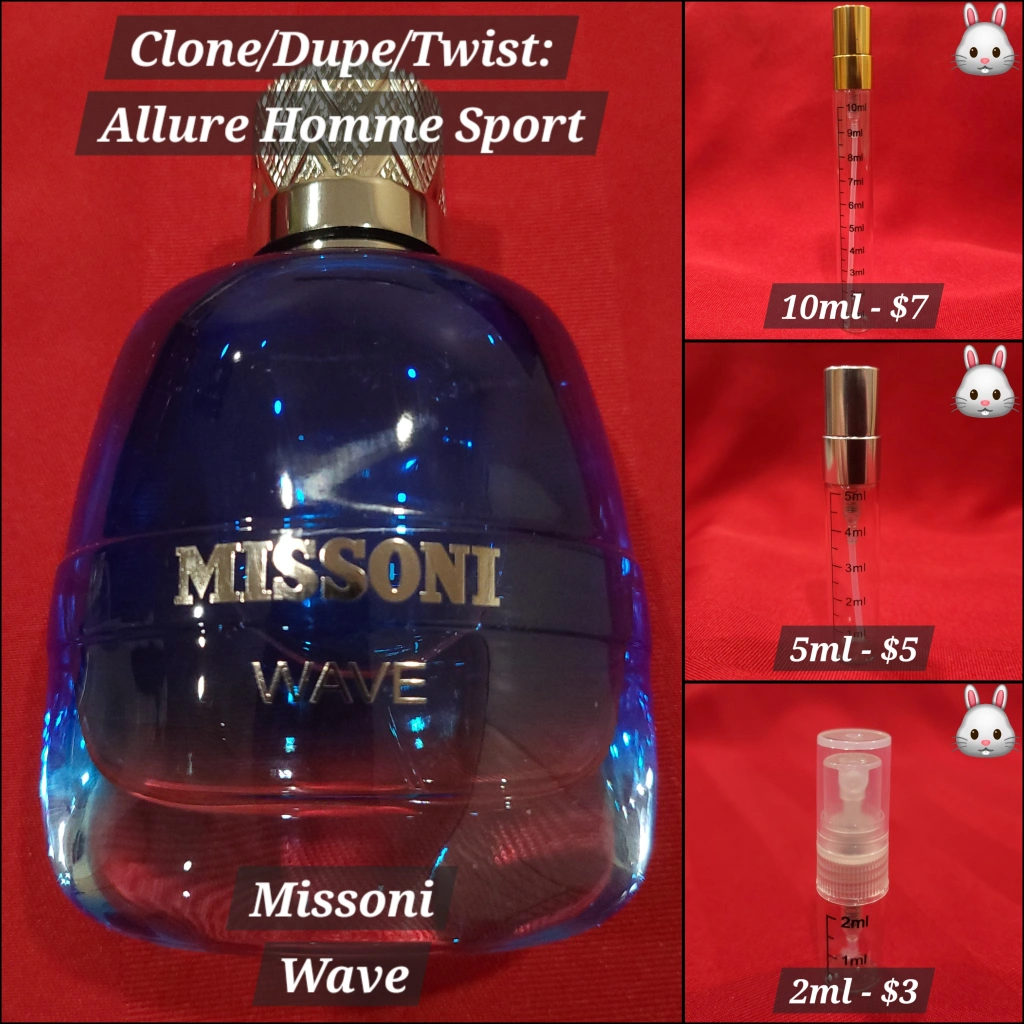 Missoni Wave perfume, clone of Allure Homme Sport. Available in 2ml, 5ml, and 10ml sizes. Prices vary.