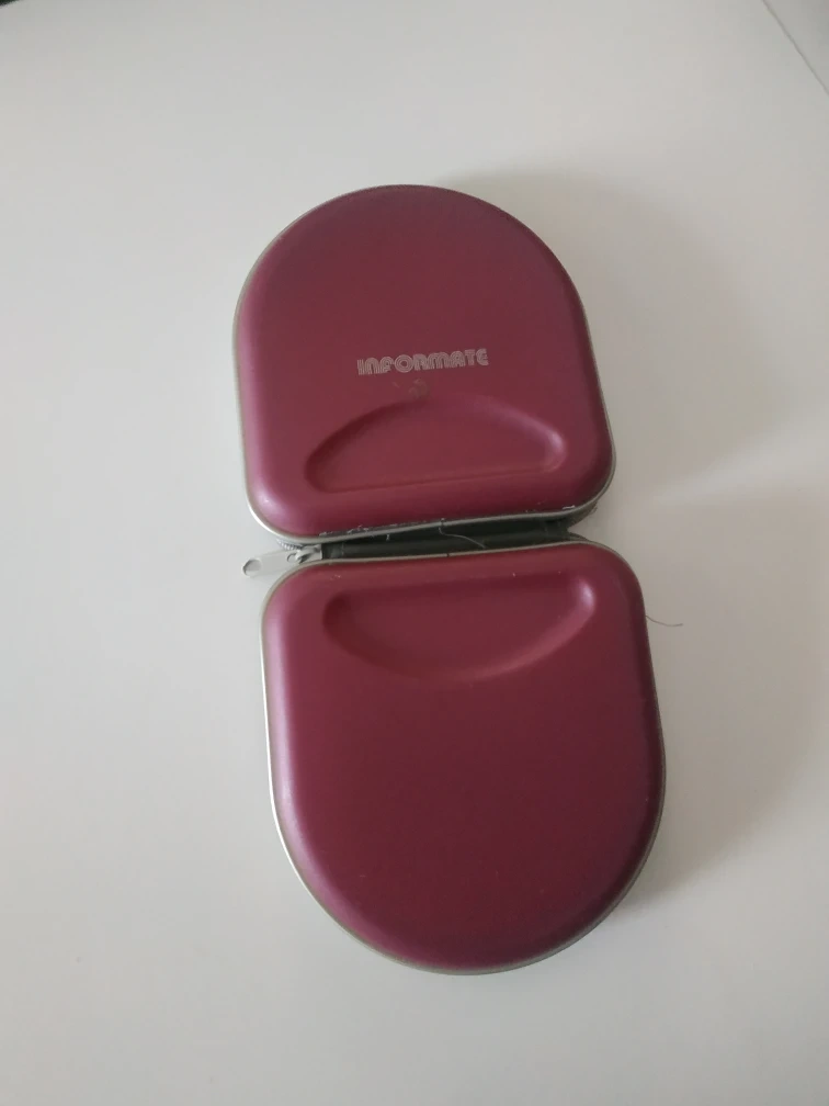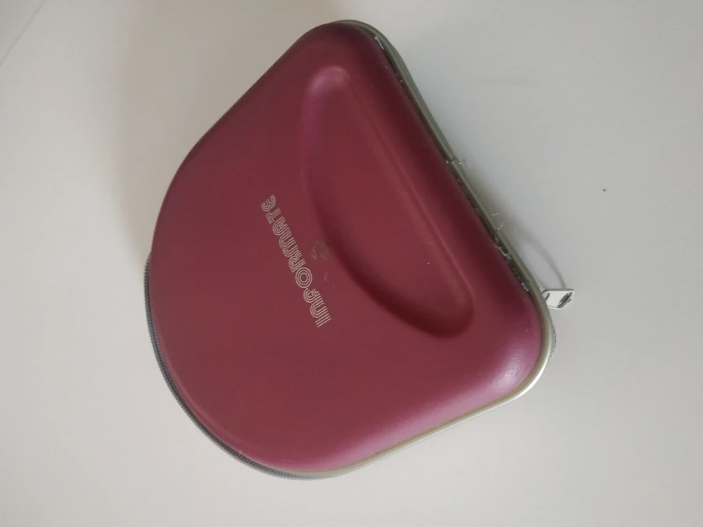 Burgundy coloured hard case. Holds 28 discs. Zipper closure. Great for storage and travel.