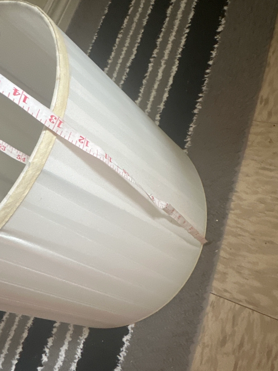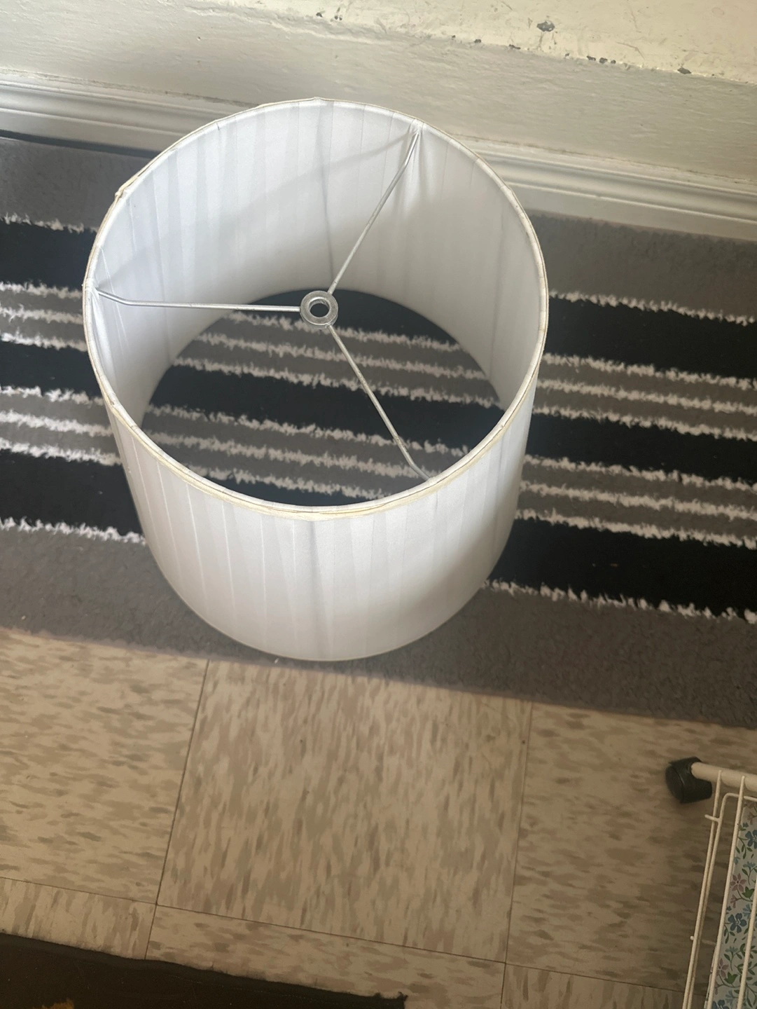 Cylinder lampshade. Off-white colour. Pleated fabric. Metal frame. Good condition.