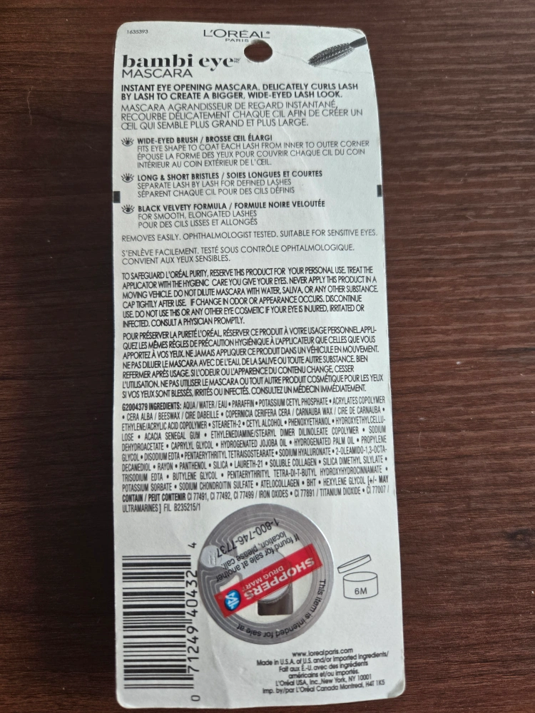 New L'Oréal Paris Bambi Eye Mascara. Instant eye opening mascara. Delicately curls lashes for a bigger, wide-eyed lash look. Wide-eyed brush. For sensitive eyes. 8.5 mL.