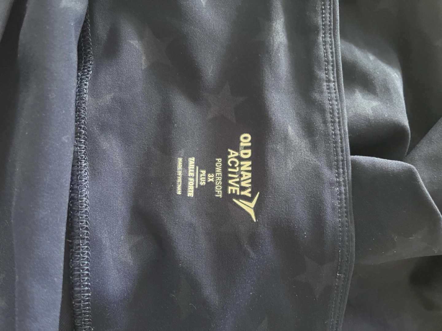 Navy blue athletic shorts. Features a high waistband and side pockets. Subtle star pattern. Plus size. Like new