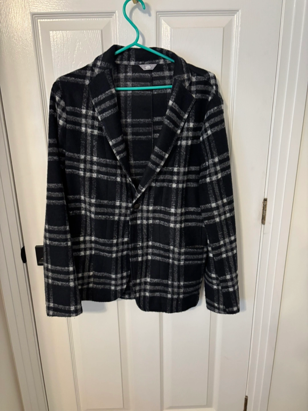 25Gorgeous men's blazer. Black and white plaid pattern. Soft material. Size 52. Two pockets.