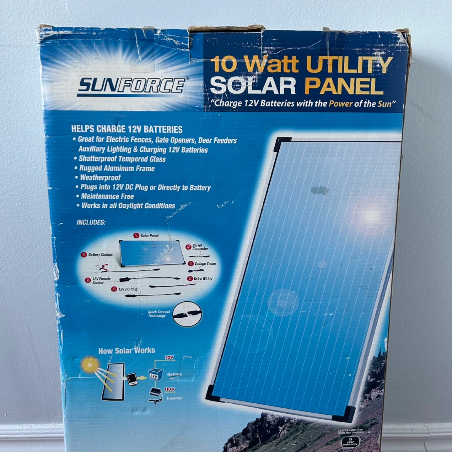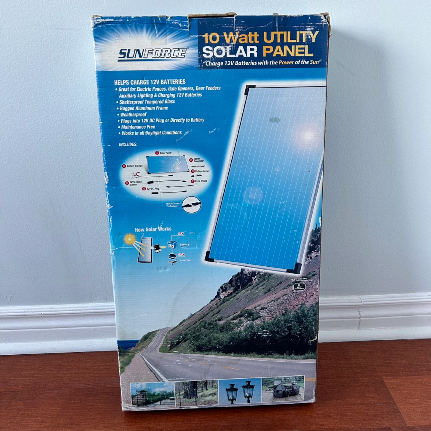 HELPS CHARGE 12V BATTERIES • Great for Electric Fences, Gate Openers, Deer Feeders Auxiliary Lighting & Charging 12V Batteries • Shatterproof Tempered Glass • Rugged Aluminum Frame • Weatherproof • Plugs into 12V DC Plug or Directly to Battery • Maintenance Free • Works in all Daylight Conditions New, never used. Has been in storage. Pickup at Burnhamthorpe and East Mall
