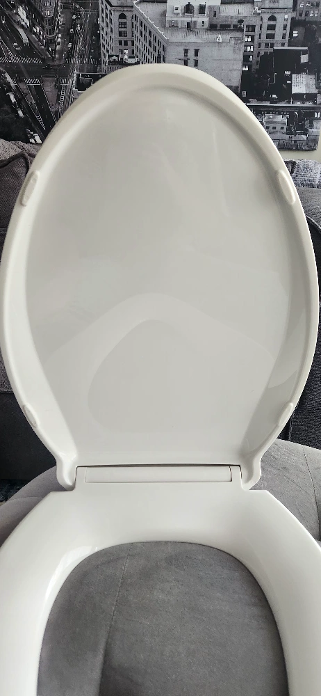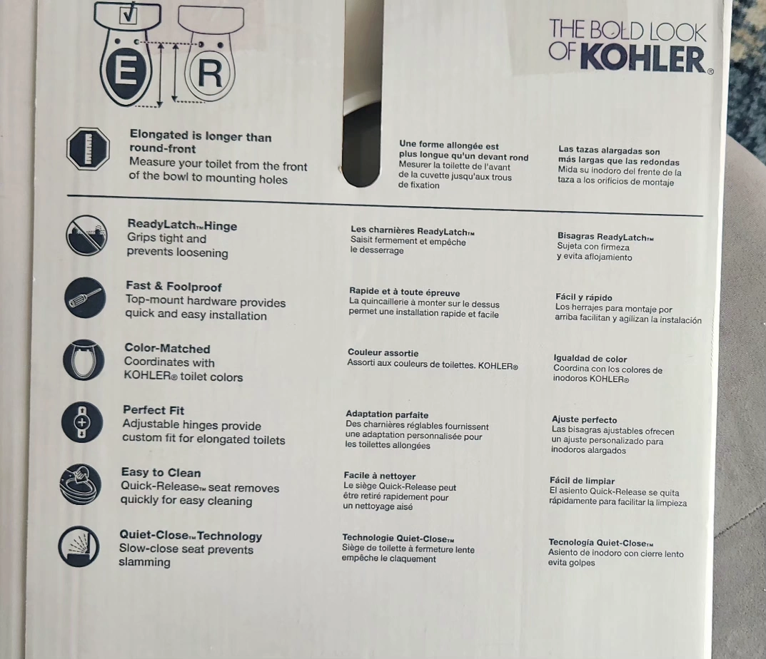 KOHLER's elongated night light toilet seat in white. Has 3 light intensity settings with a 6 hour on/off automatic timer so no need to turn on the bathroom light at night. Quiet/slow close seat and lid prevent slamming and has an easy release latch for easy cleaning. FEATURES: - Quiet close seat and lid - Light intensity designed to provide enough light to see the toilet without disrupting night-time vision. - Grip-tight installation hardware makes it easy to fasten the seat. - Grip-Tight bumpers stop seat from sliding - ReadyLatch hinge provides a positive lock/unlock latch to securely hold seat in position, yet seat easily removes for cleaning. Great condition with the exception of one clip that broke but has been glued back together. Has been thoroughly cleaned and sanitized.