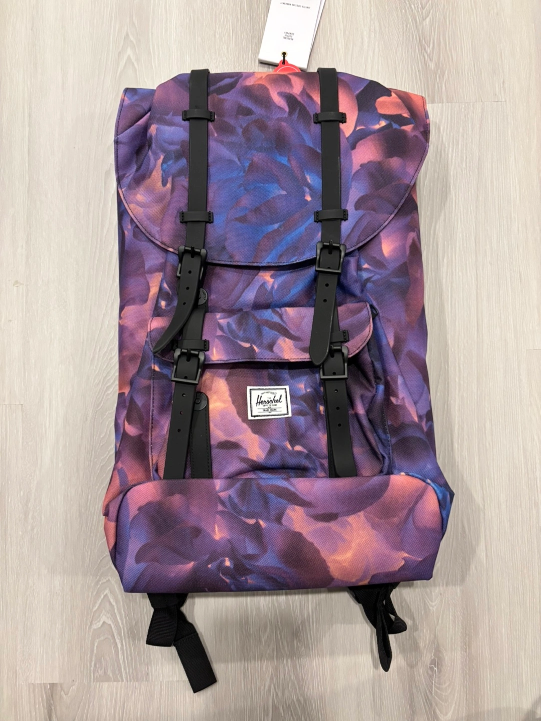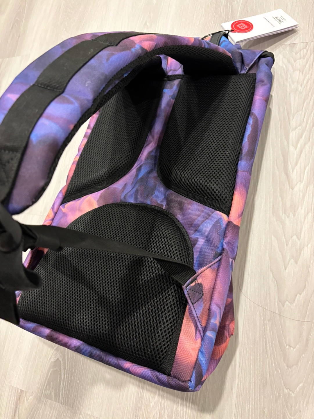 Smoke free pet free home Pick up only Yonge & Steeles Item brought to driveway Brand new with tag Giftable 25L large backpack for trips or school Dark purple with hint of rose colour Fits a lot without being bulky