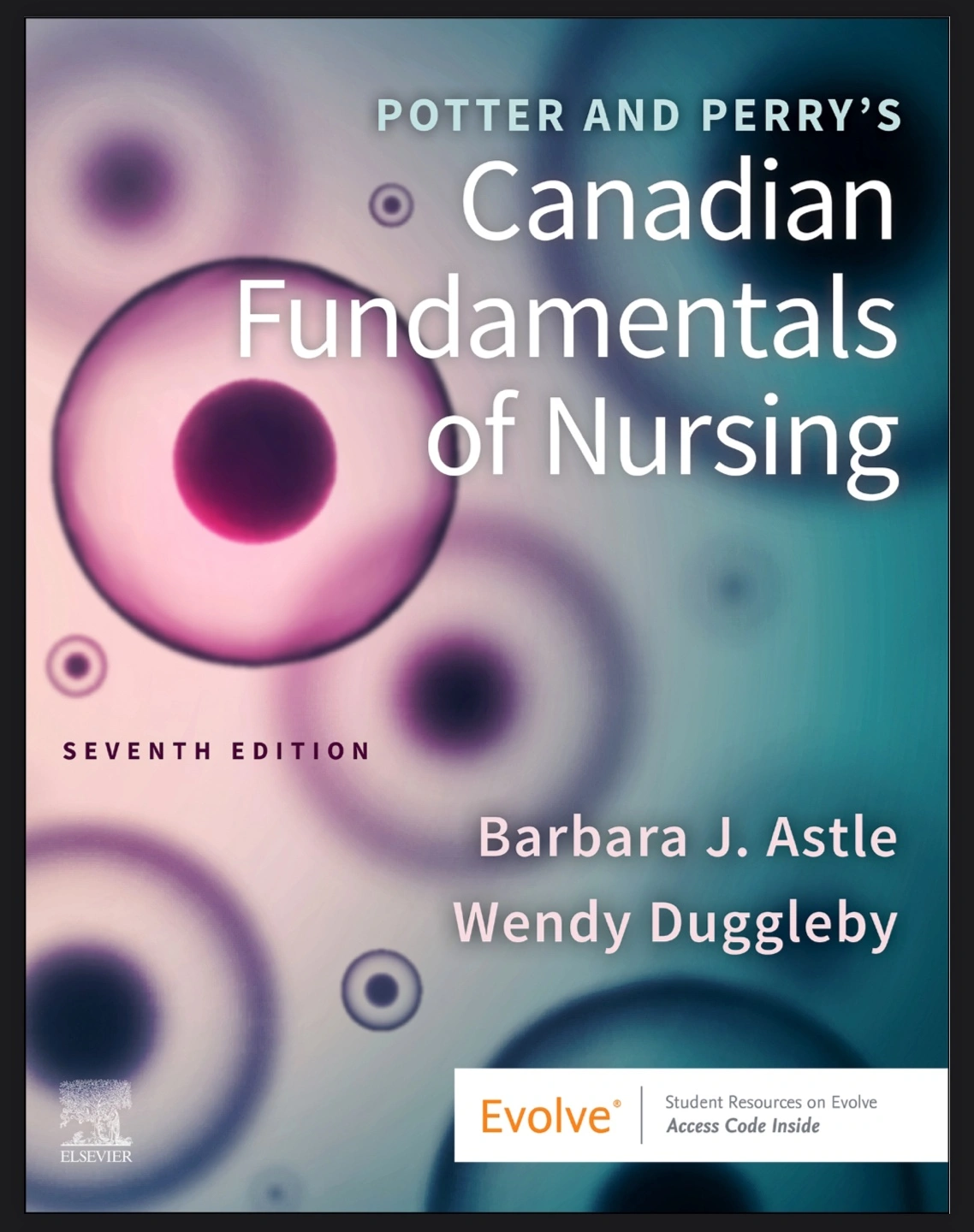 Seventh edition Canadian Fundamentals of Nursing textbook by Potter and Perry. Authors include Astle, Duggleby, Potter, Stockert, Griffin Perry, and Hall. Elsevier publication. 5466 pages. High definition Quality PDF.
