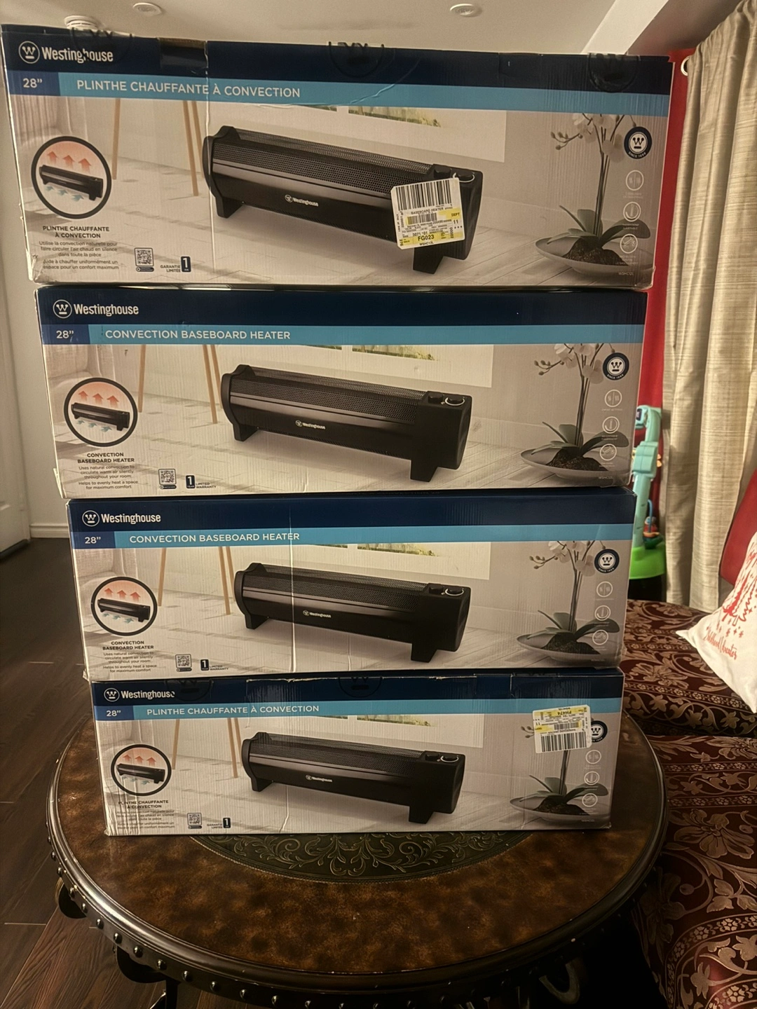 $50 each (4 available) No offers Embrace the warmth and silence of the Westinghouse 28” Convection Baseboard Heater, a sleek and efficient appliance that delivers gentle and even heat distribution throughout your room. Its natural convection technology quietly circulates warm air, creating a comfortable and inviting environment without disturbing your peace. Technical Specifications: •28-inch length •Natural convection heating •2 heat settings: 750W low / 1500W high •Adjustable thermostat •Power light indicator •Ultra-quiet operation •Low-profile design •Tip-over and overheat protections •120V AC 60Hz 1500W Enhance Your Home's Comfort with Discreet and Efficient Heating The Westinghouse 28” Convection Baseboard Heater is the perfect solution for those seeking silent and efficient heating without compromising comfort or style. Its low-profile design blends seamlessly with your décor, while its natural convection technology delivers gentle and even warmth throughout your space. Whether you're relaxing in the living room, working in your study, or enjoying a meal in the kitchen, this heater will keep you cozy and comfortable without disrupting your activities. Order your Westinghouse 28” Convection Baseboard Heater today and experience the warmth of silent and efficient heating! Features: • Silent Convection Heating: Enjoy the warmth of silent and efficient natural convection heating that evenly distributes warm air throughout your room, creating a comfortable and inviting atmosphere without disrupting your activities. • 2 Heat Settings: Choose from 750W low heat or 1500W high heat settings to tailor the warmth level to your preference. • Adjustable Thermostat: Maintain a consistent temperature with the adjustable thermostat that allows you to set the desired heat level. • Power Light Indicator: Easily monitor the heater's operation with the convenient power light indicator. • Low-Profile Design: The heater's compact and low-profile design fits snugly against your baseboard, maximizing space utilization and maintaining a sleek appearance in your home. • Safety Features: Tip-over and overheat protections provide peace of mind, ensuring safe operation even when unattended. View my other items for great deals. Decluttering Pick up location: sandalwood and airport rd Brampton