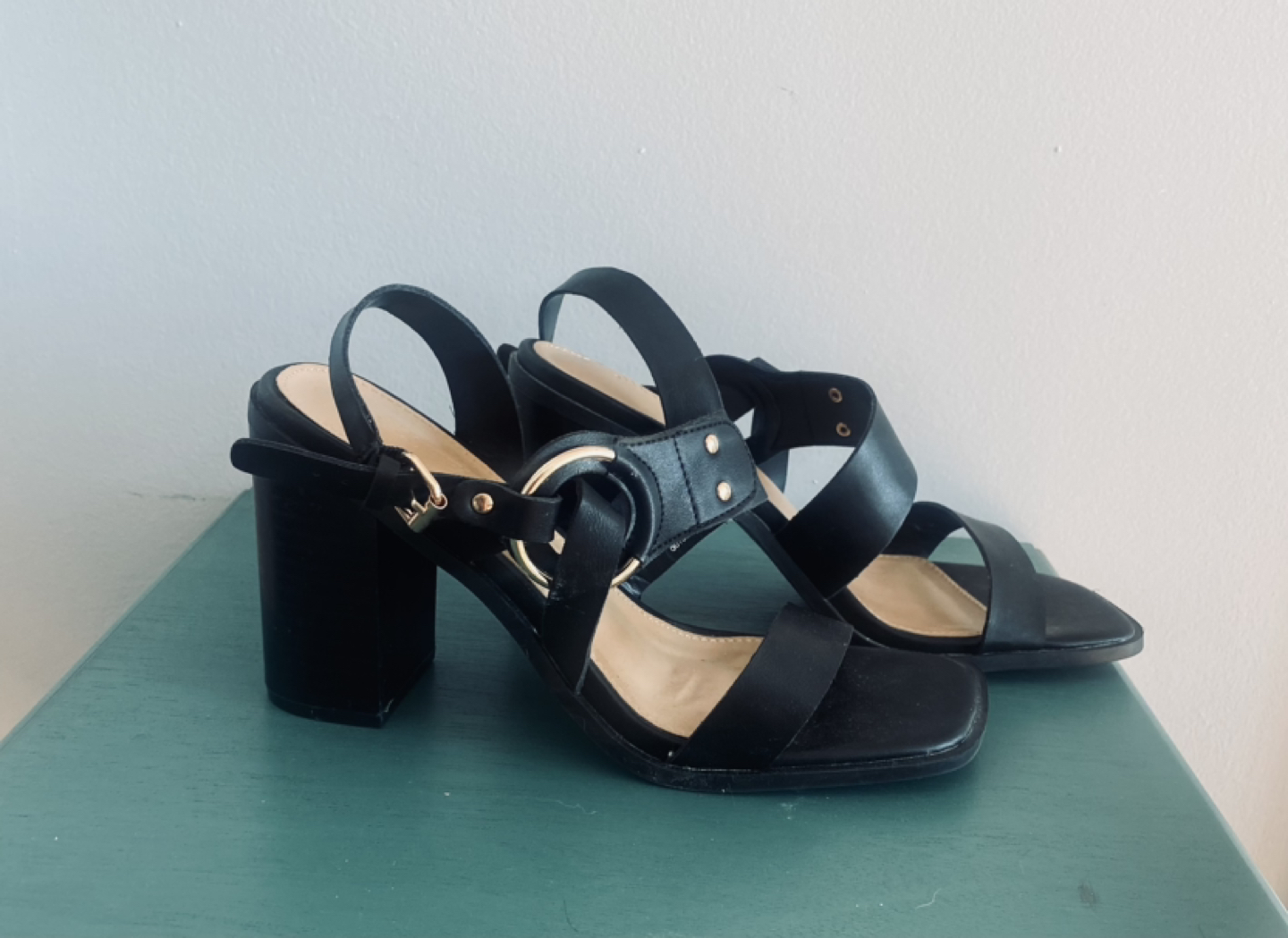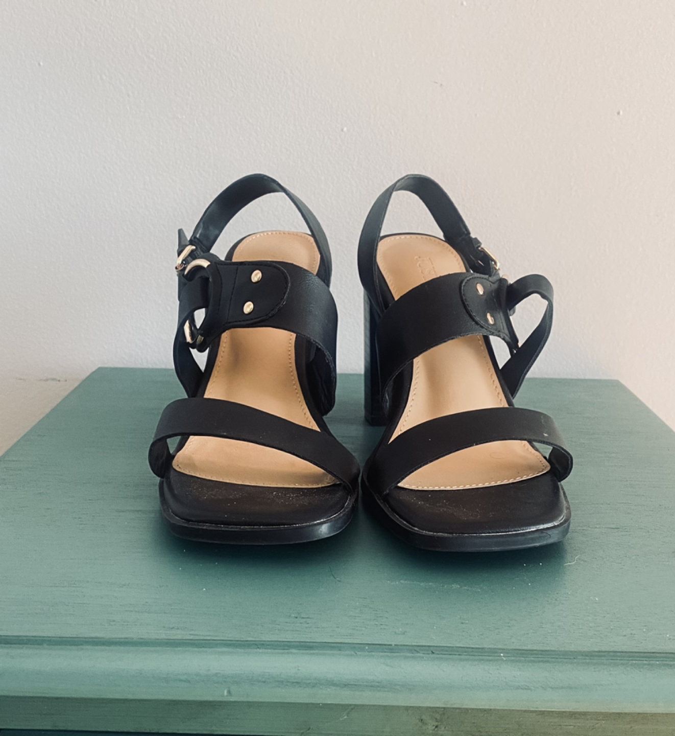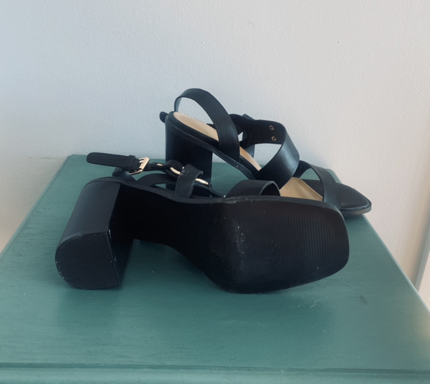 Black straps sandal sz 7 faux leather, chunk heel from just fab Pickup parklawn and lakeshore area