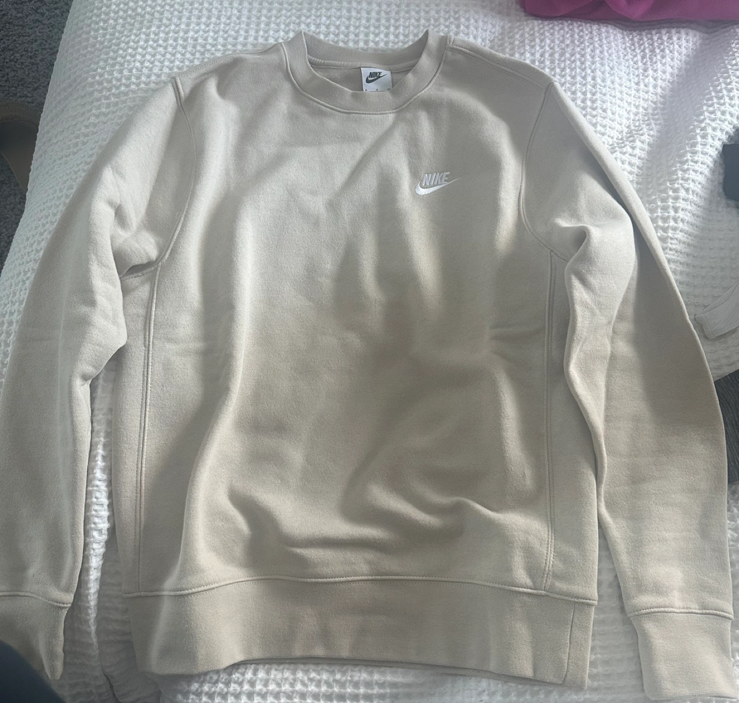 Cream-coloured Nike crewneck sweatshirt. Long sleeves, classic fit. Small Nike logo on the chest. Mens size S. Worn maybe once, don’t like the colour on me. Pickups at Islington&Queensway or close by $20 MSG if interested