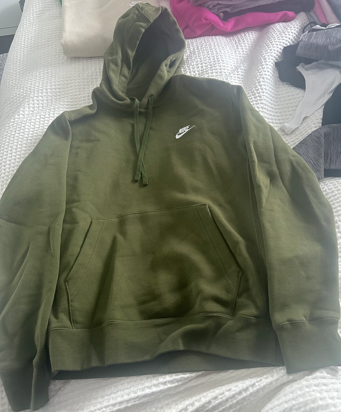 Men's Nike hoodie. Olive green colour. Long sleeves. Front pouch pocket. Drawstring hood. Size S men’s. Only worn a few times, so it’s in great condition. Asking $30, pick up at Islington & Queensway or close by