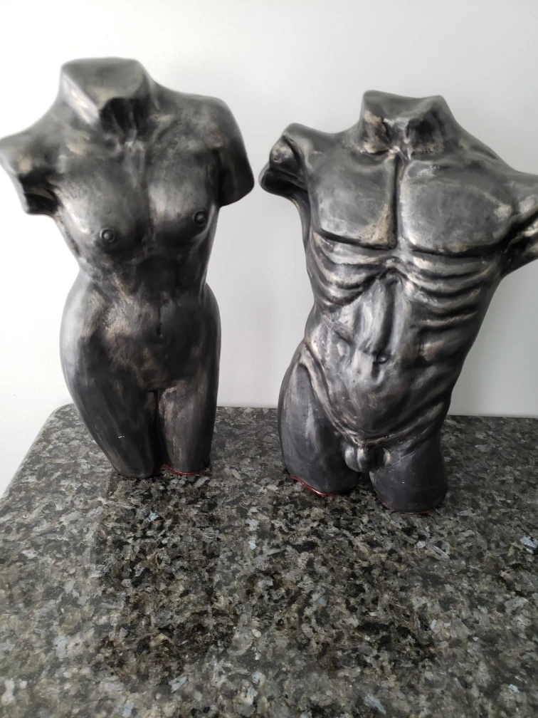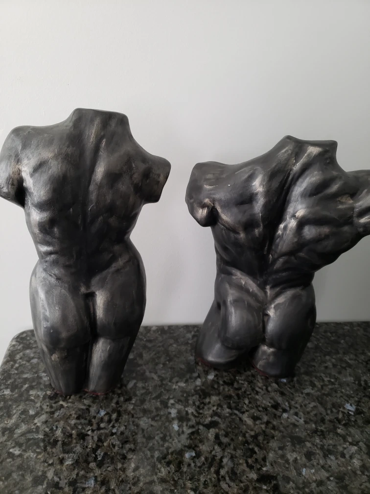Sculptural torso figurines. Detailed musculature. Approximately 40cm tall. Unique home decor.