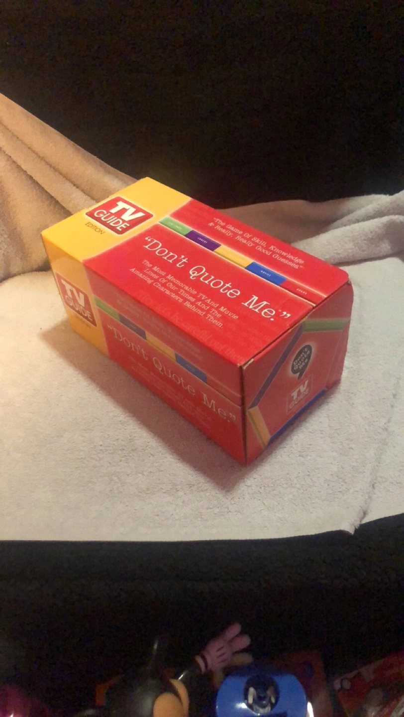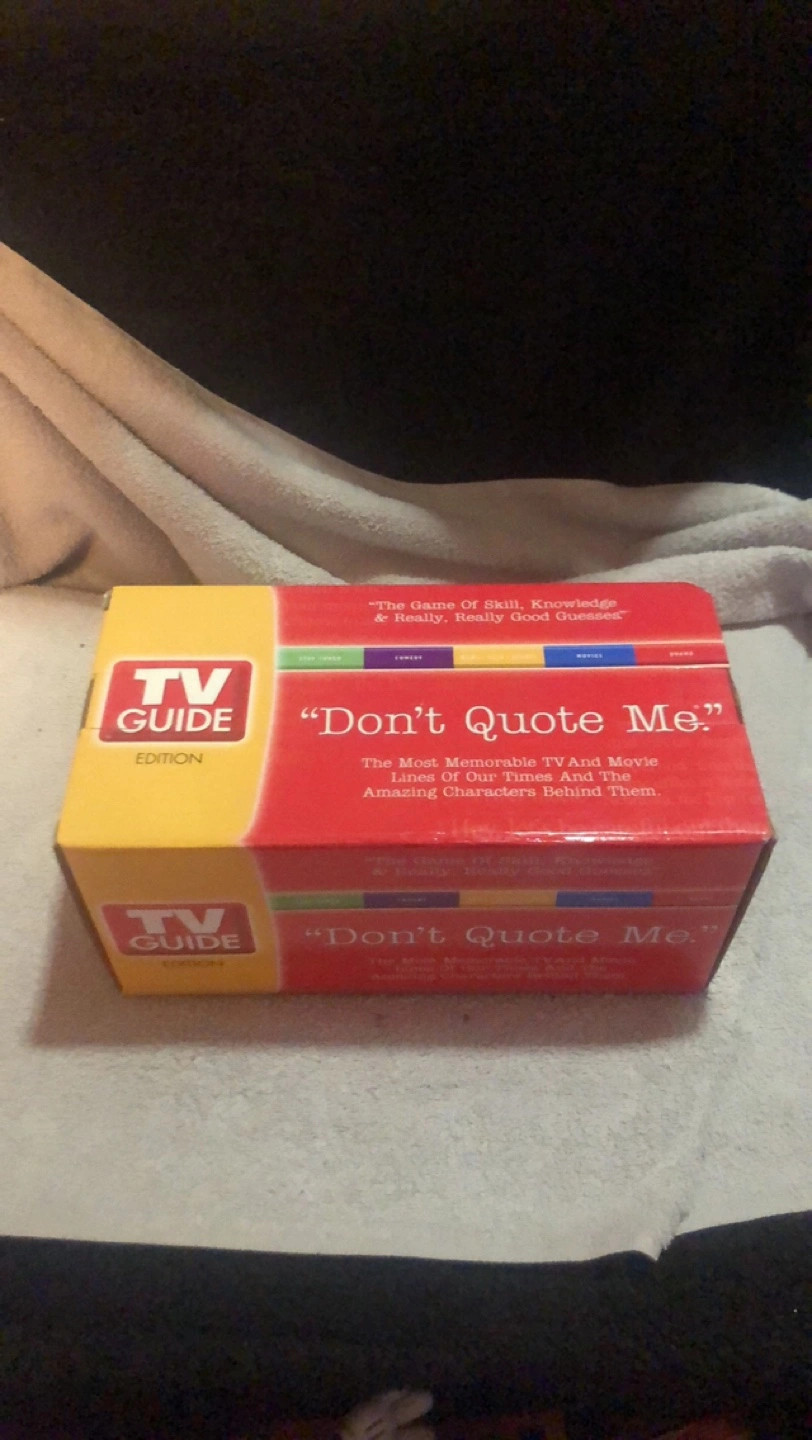 New in box trivia game. Features memorable TV and movie quotes. Easy to play. For 2-4 players. The popular trivia game is now strictly focused on the world of TV and Film! For those of you who carefully plot out your moves to avoid other subjects, this TV Guide Edition offers everything you want, and nothing you don't.". Need a hint. Bogart character. Need another. Film set in Morocco. The answer. Rick Blaine (as said to Capt. Louis Renault in the film Casablanca). Each question asks you to identify a memorable line from TV shows (Comedy, Drama, News, Talk and Sports) and Movies. The 3-tiered scoring system allows you to earn points for answering the question immediately, or with the use of 2 hints. Each answer card is packed with interesting information about the subject matter, making this more than just a Q & A game. Game comes with 2,000 Quotes & Questions, 300 Colour-coded Game Cards, 100 special TV Guide Cards, 5 custom Game Pieces, a unique pentagon Game Board, and Game Instructions.