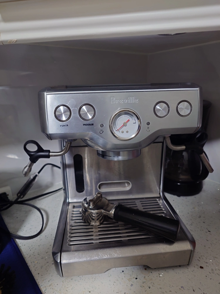 Stainless steel espresso machine. Includes portafilter and filter baskets. Pressure gauge doesnt move but works as good. Good condition.
