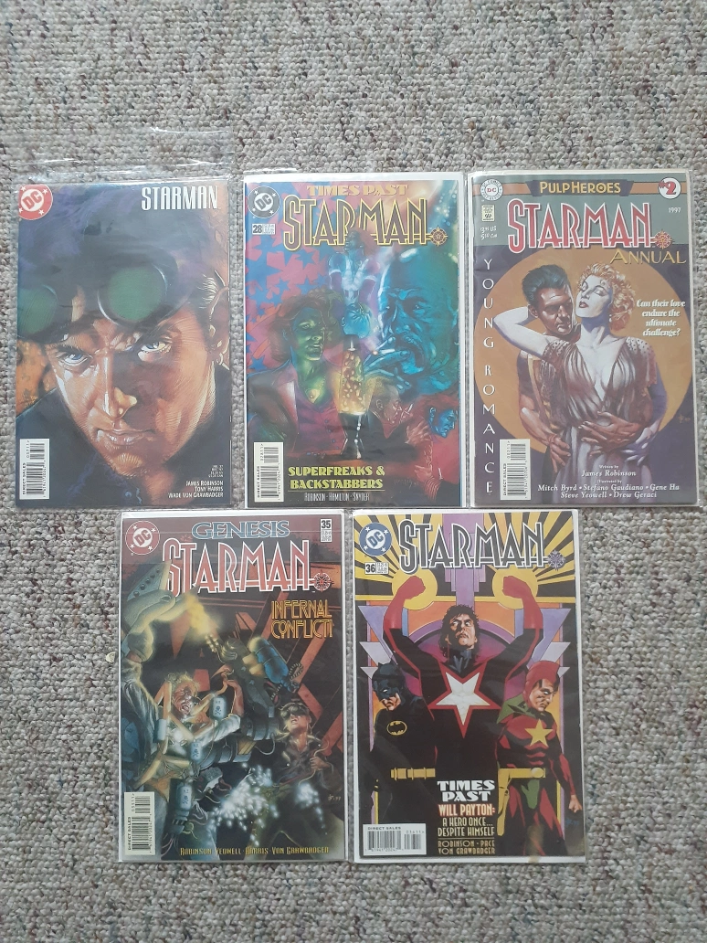 Collection of five Starman comic books. Issues include #28, Annual #2, and #35. Various artists and writers.