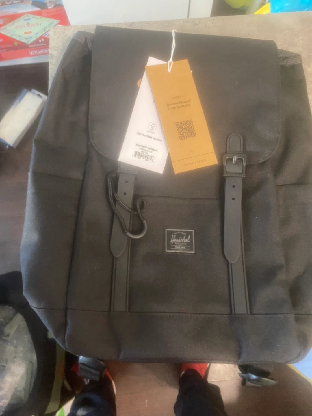 Black Herschel Retreat small backpack. Features black accents. Good condition.