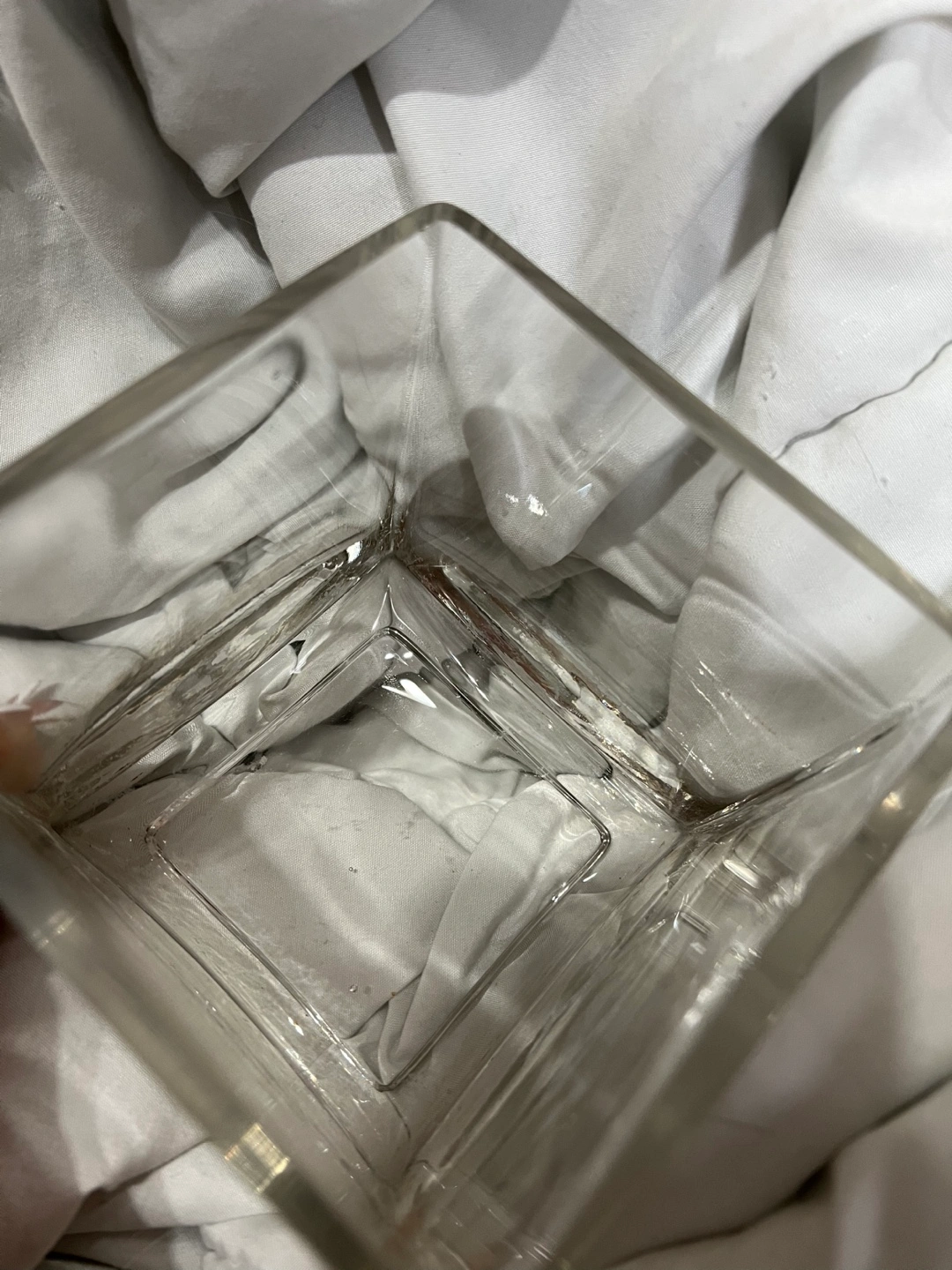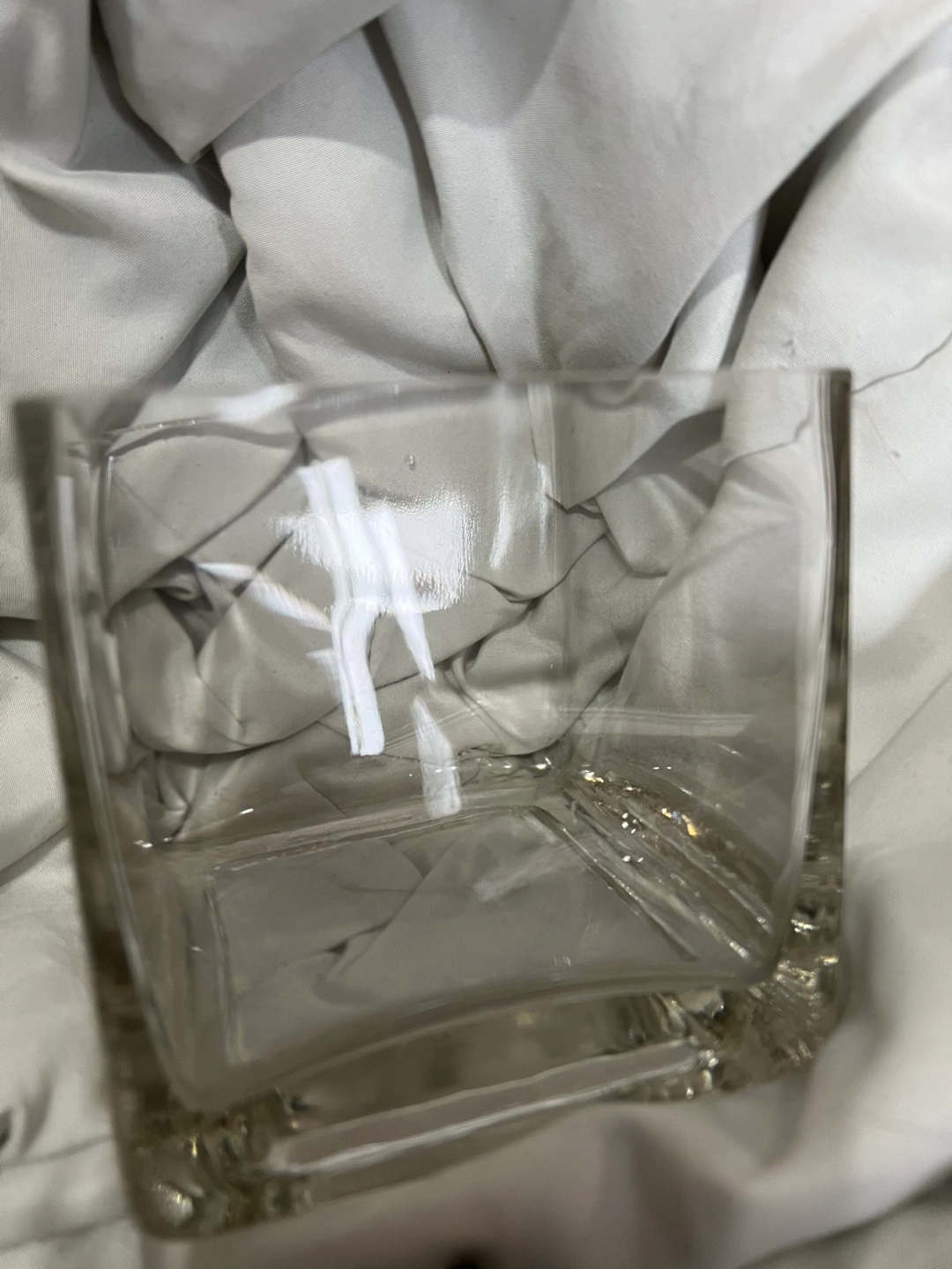 Clear glass cube vase.
