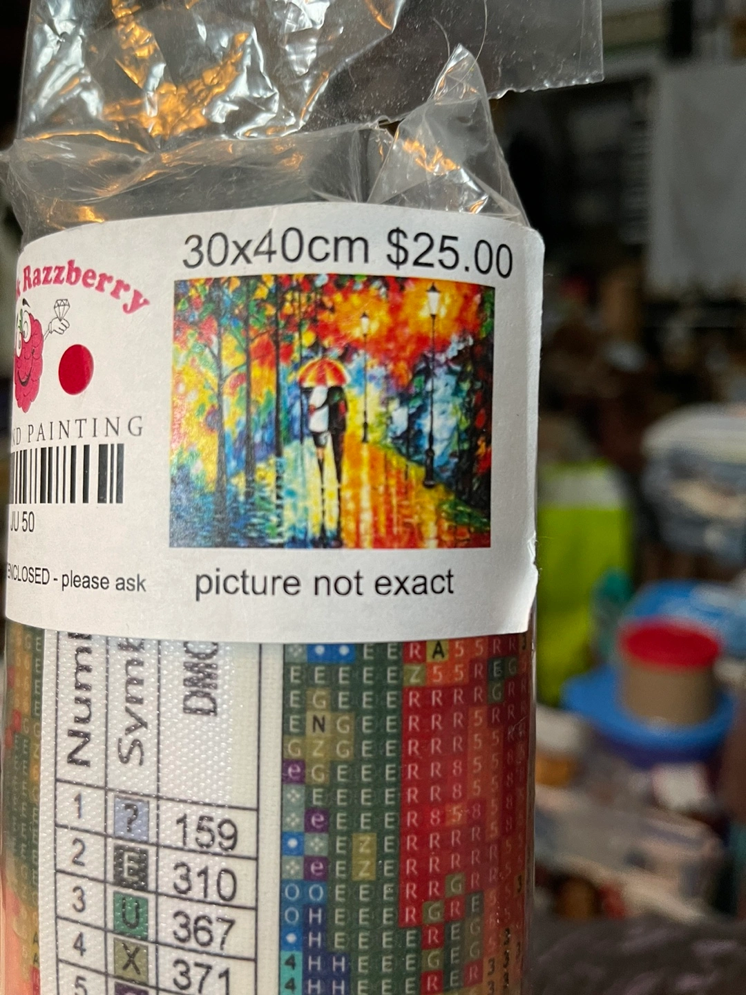 Diamond Dot painting kit, 30x40cm. Picture shows a couple walking under an umbrella. Was $25.00