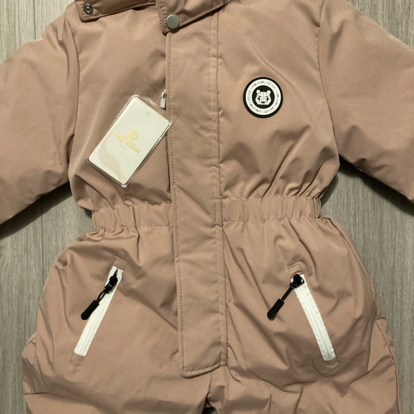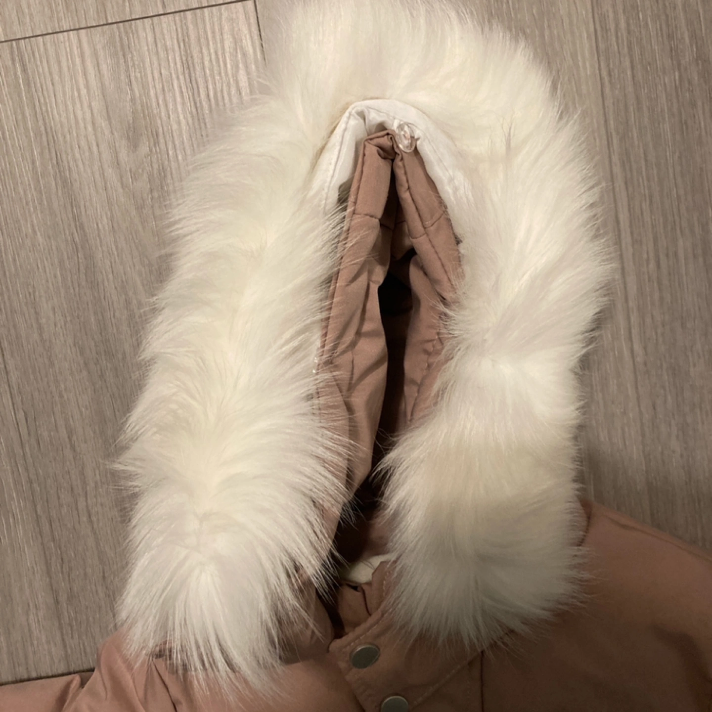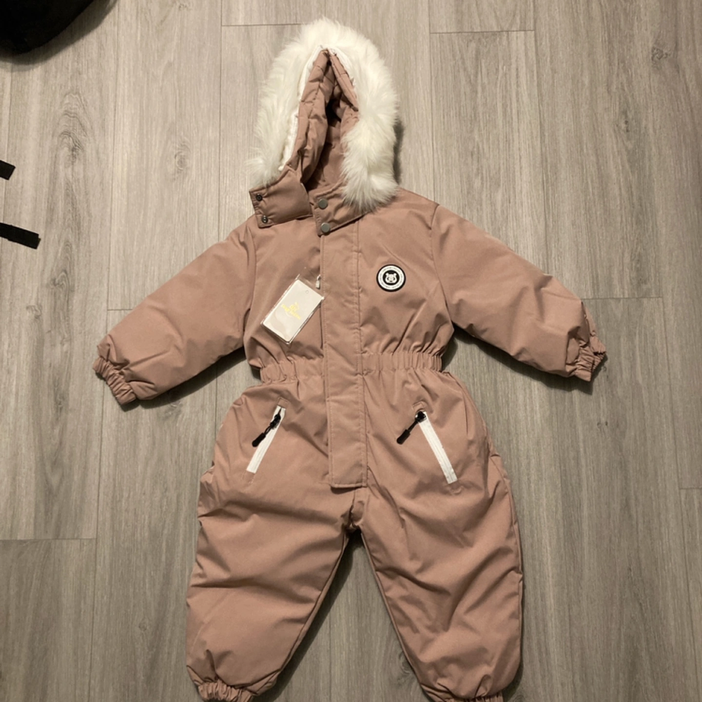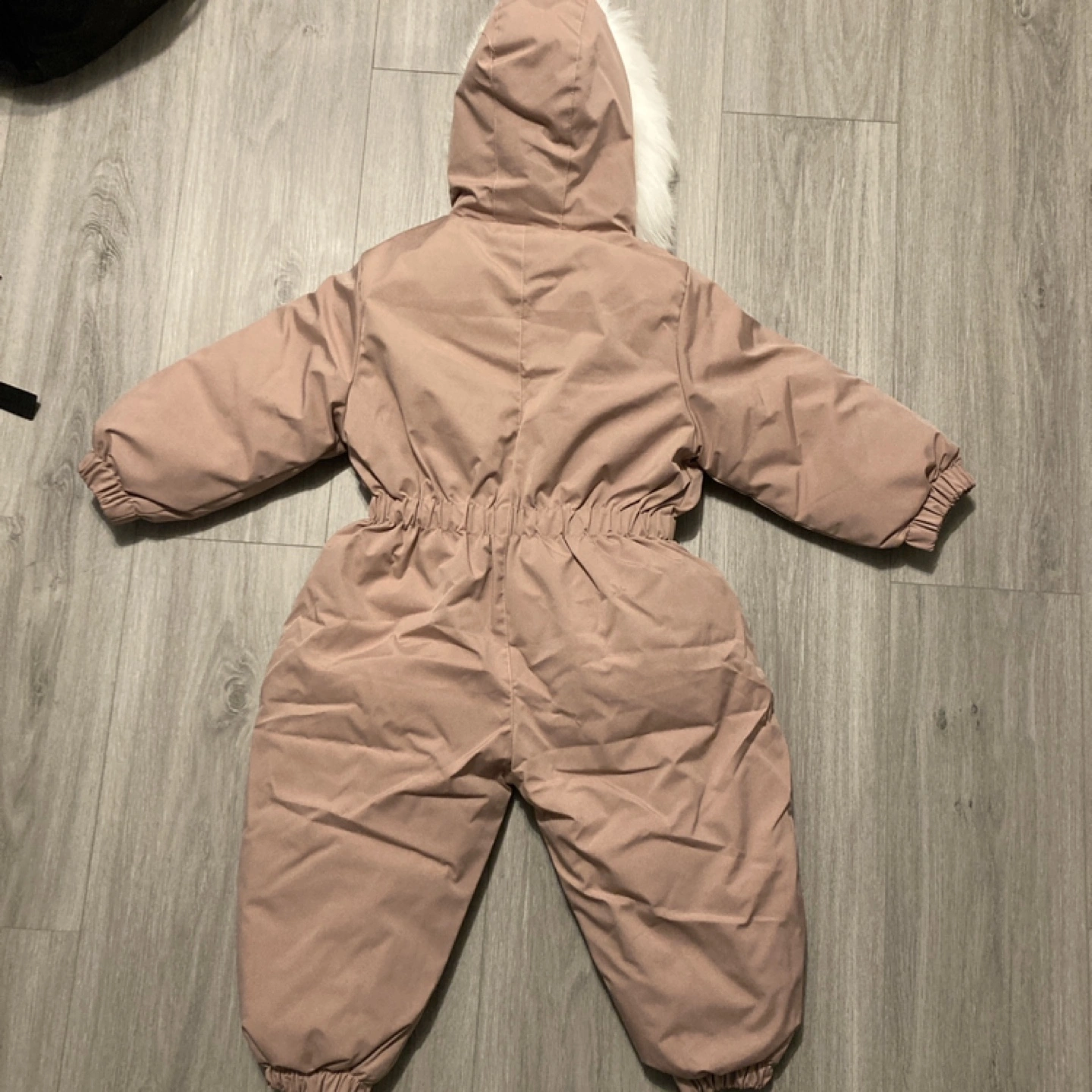 Adorable baby snowsuit. Dusty rose colour. Features a faux fur trimmed hood and zippered pockets. Elastic waistband. Excellent condition.