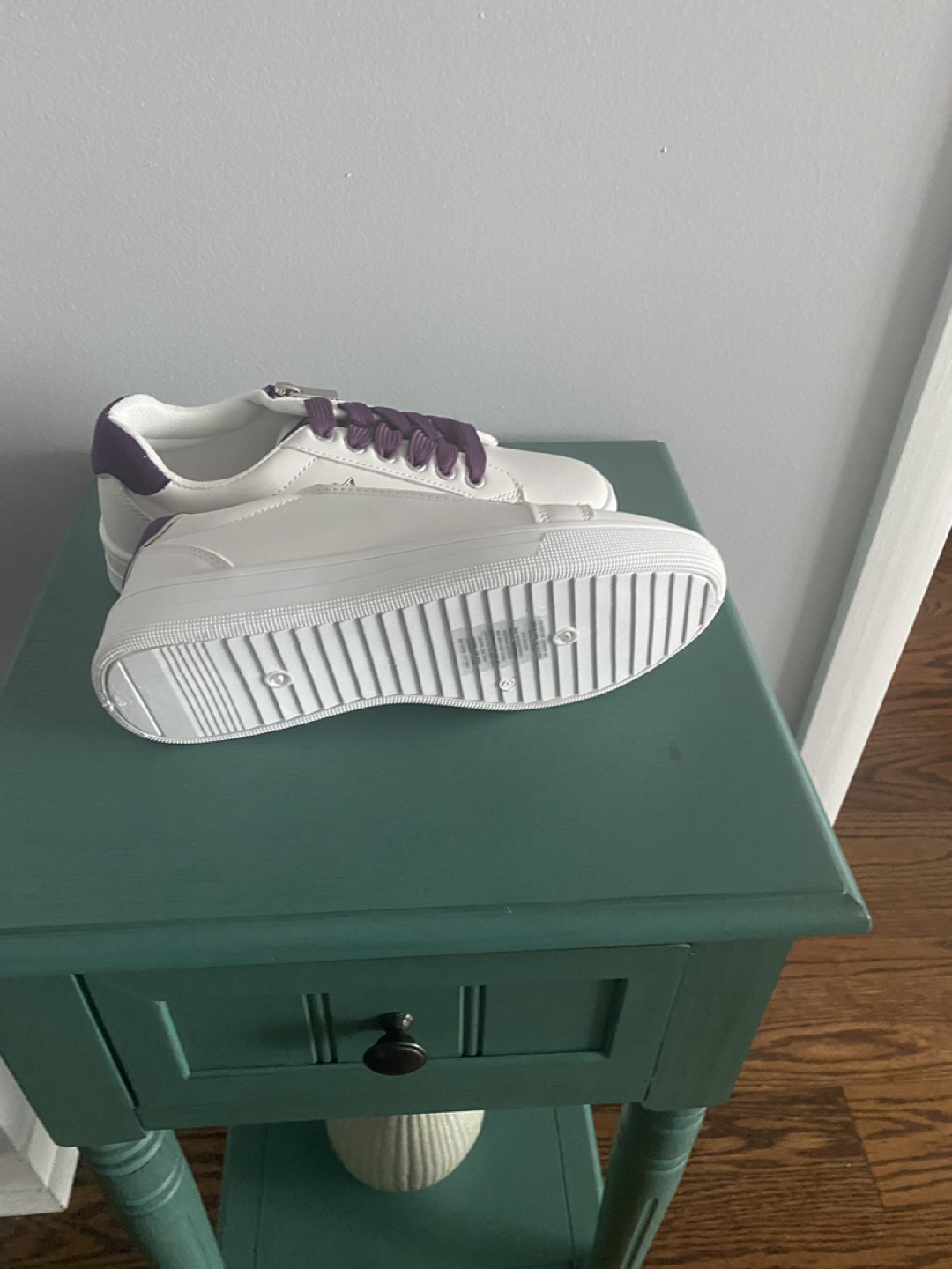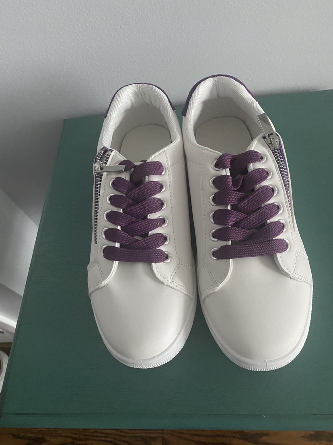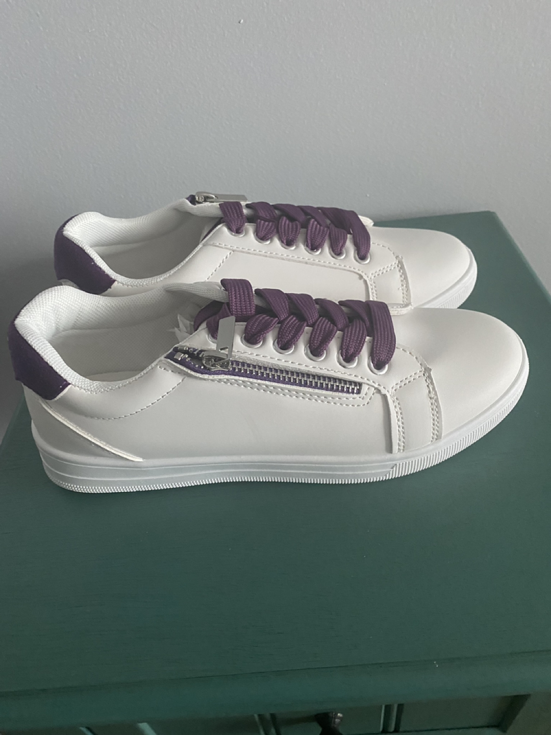 New never worn sz 8 white withe purple laces. Has side zipper for easy access, no need to lace up You can change laces to any colour you want Pickup parklawn and lakeshore area