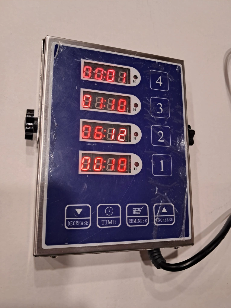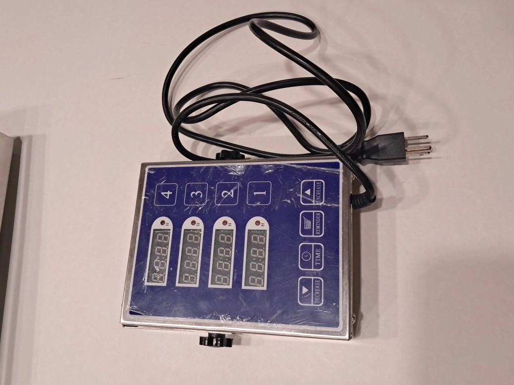 Four channel digital timer. Multiple display options. Includes power cord. Used condition. Good for food trucks, restaurants