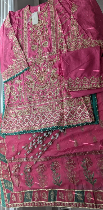 silk embroidered formal 3 piece stitched suit. pick up THOROLD ON or can deliver it all over Canada ๐จ๐ฆ