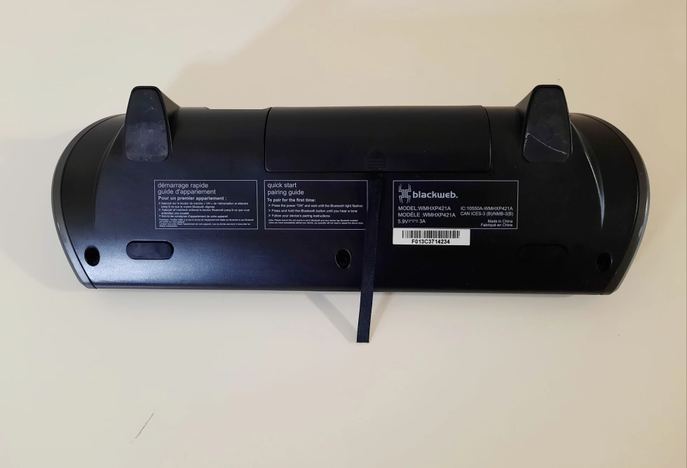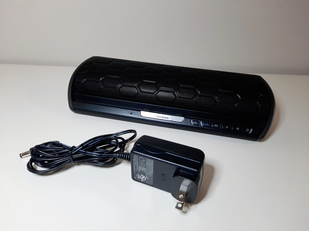 Portable Bluetooth Speaker Condition: Good (Used) Brand: Blackweb Version: Soundwave Includes: charging cord and adapter Features: > Portable Speaker for Bluetooth devices > Charging cord and adapter > Also works with AA Batteries > Built in speaker-phone feature > Slot design on front holds most smartphones > USB charging port allows phone charging > Approx 30 feet bluetooth range > Lightweight, sleek, slim design For Cash Pickup in Midnapore, SE Calgary