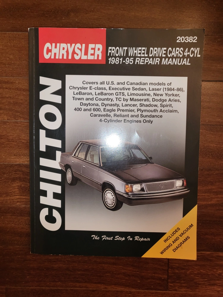 Repair manual for Chrysler front wheel drive cars. Covers US and Canadian models. 4-cylinder engines only. Includes wiring and vacuum diagrams. Chilton Chrysler Front Wheel Drive Cars 4 cyl 1981 to 1995 Repair Manual Brand New Never Used $20 obo