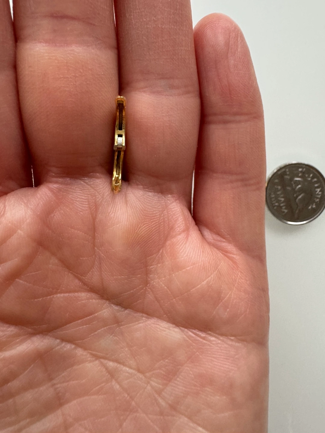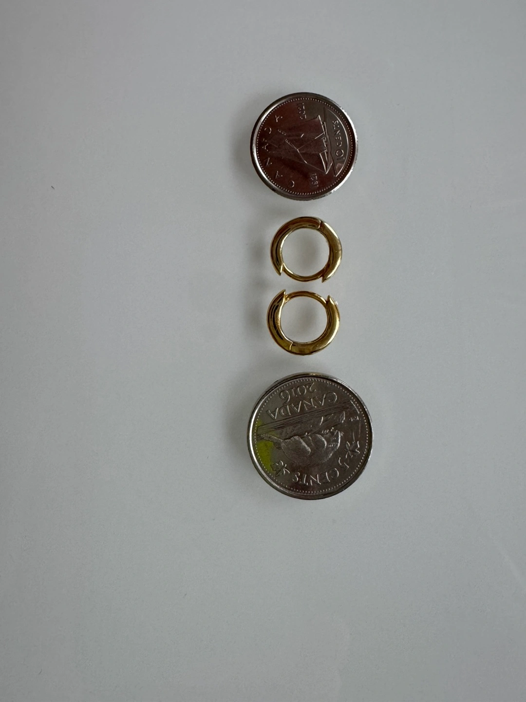 Small Sterling silver gold plated hoop earrings. Lightweight and simple design. You can add your favourite earring charms to them. Perfect everyday accessory.