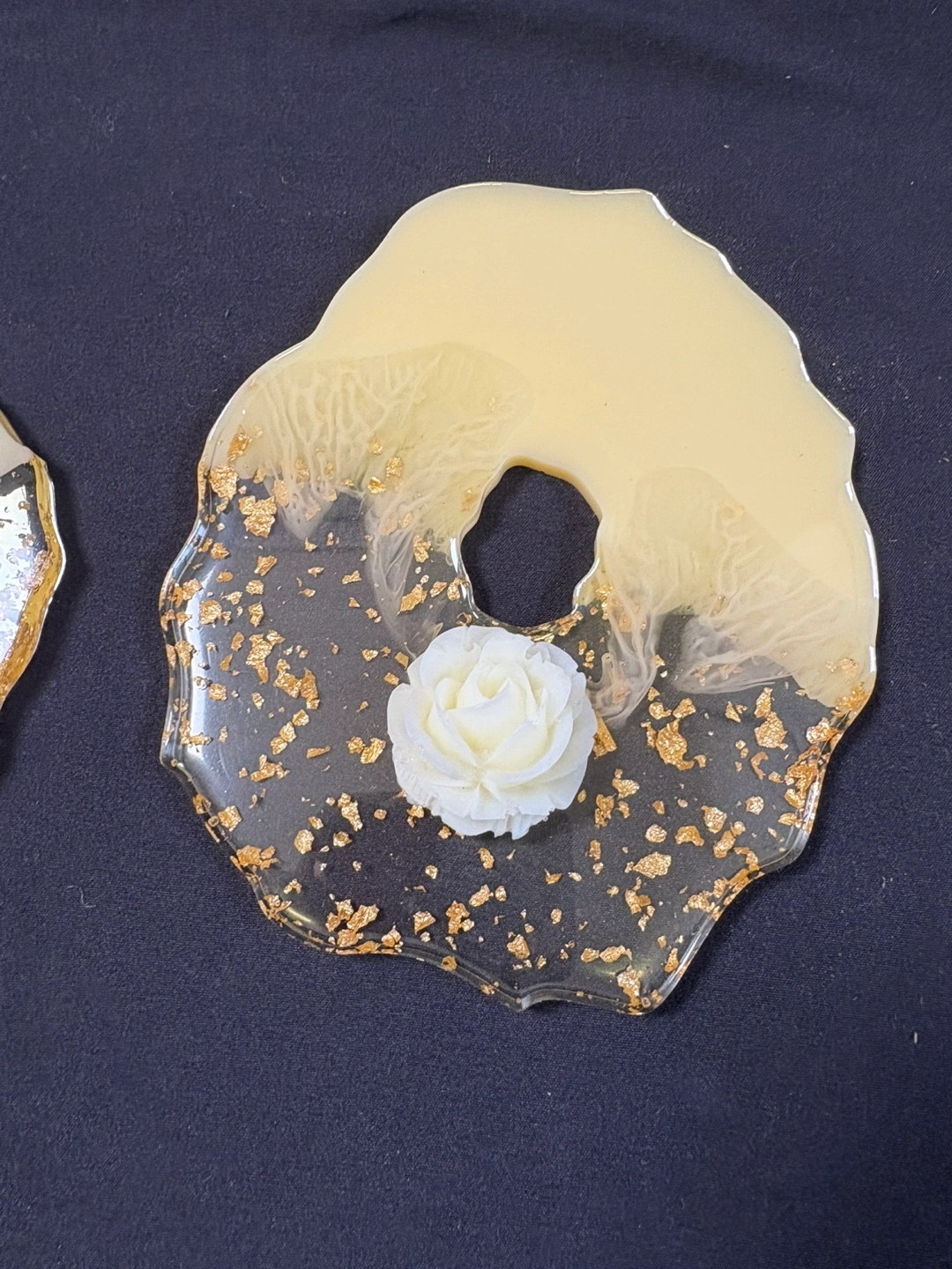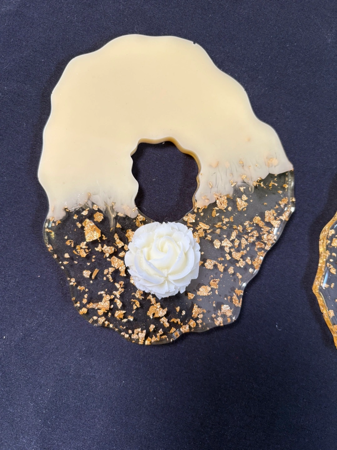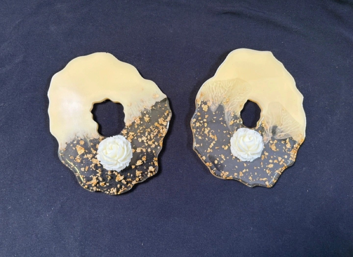 New 2 handmade resin coasters. Features a unique design with beige and black resin, gold leaf accents and a small white rose embedded in each. Perfect for adding a touch of elegance to your home décor $1 each Pick up Victoria Park and O’Connor area