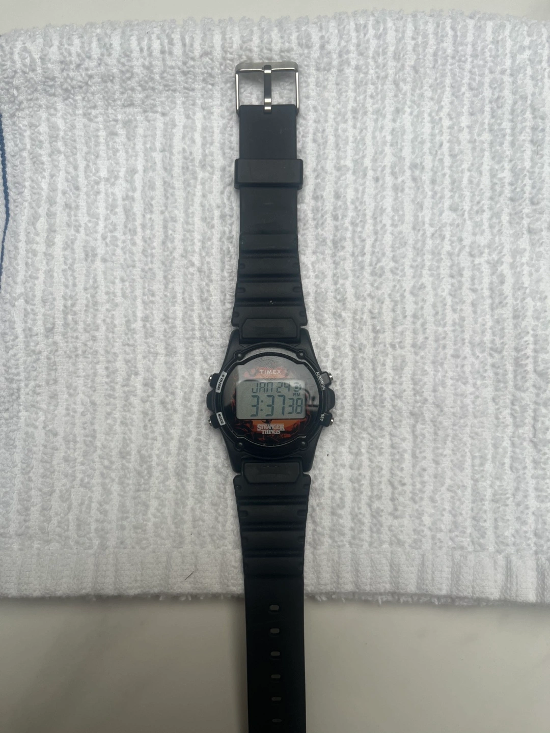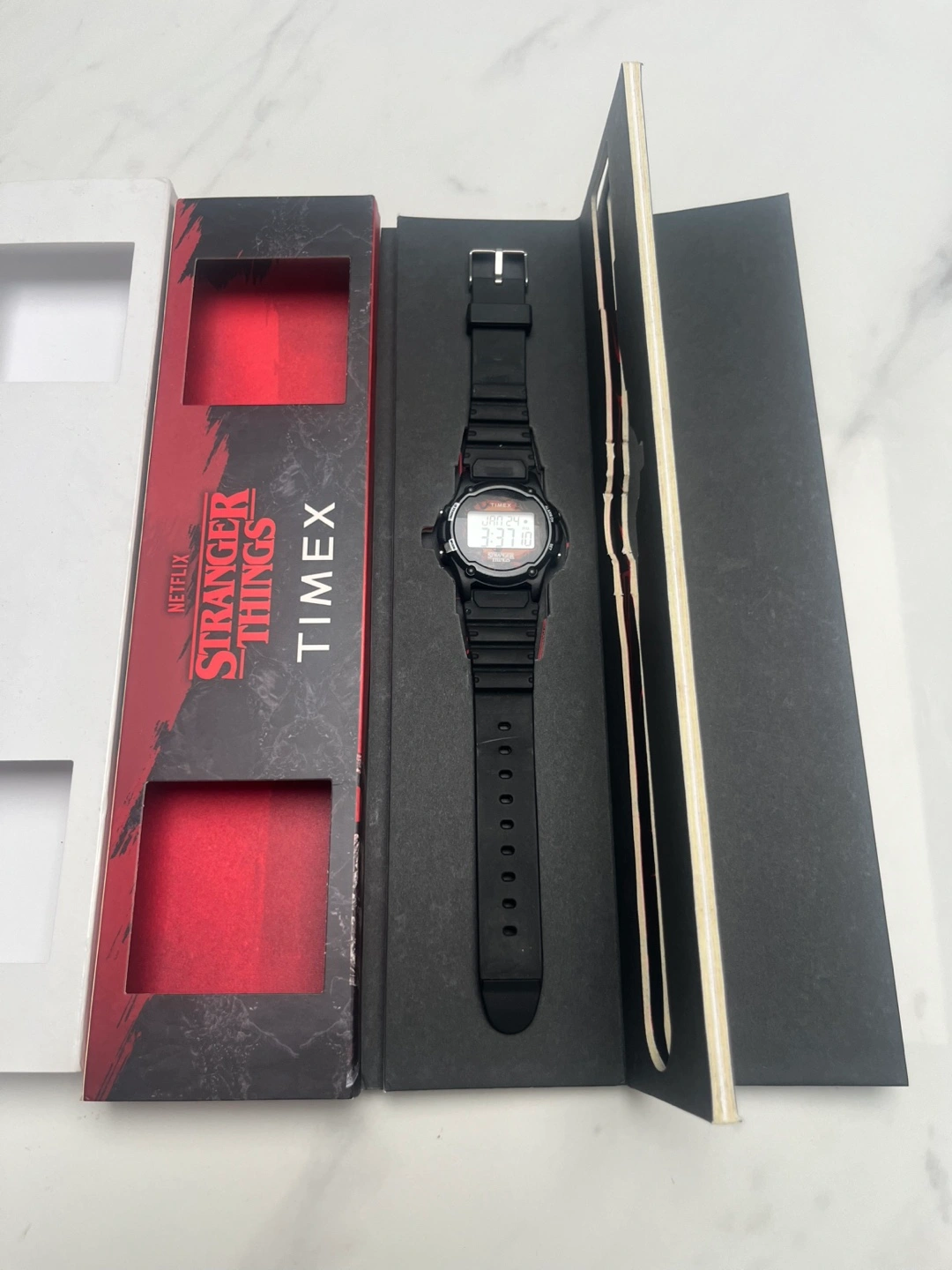 New Timex digital watch. Stranger Things collaboration. Black resin band and case. Comes in original box.