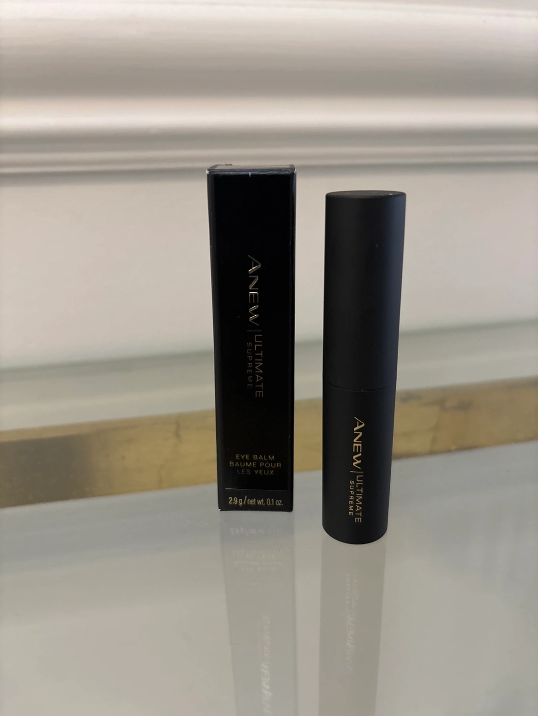 New, unopened eye balm. 2.9g/net wt. 0.1 oz. Black tube packaging.
