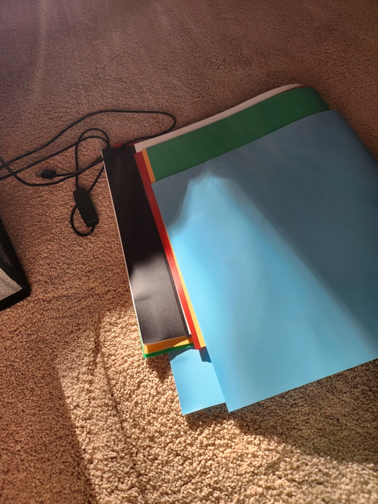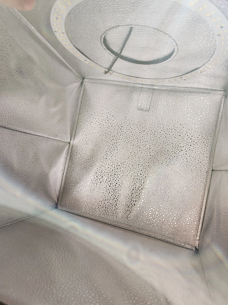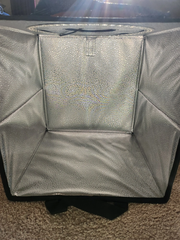 Foldable lightbox. Includes multiple coloured backdrops. Perfect for product photography. LED light included.