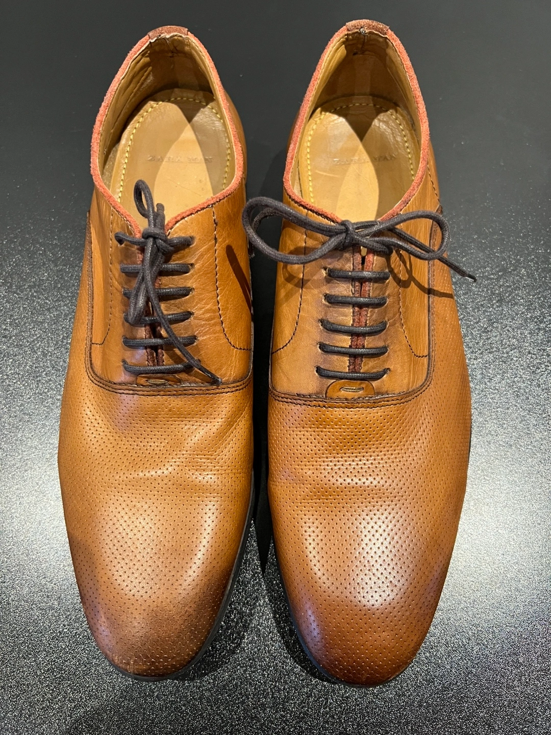Men’s 2-toned tan LEATHER Oxford shoes. Lace-up closure. Perforated detailing. Excellent condition! Size 10