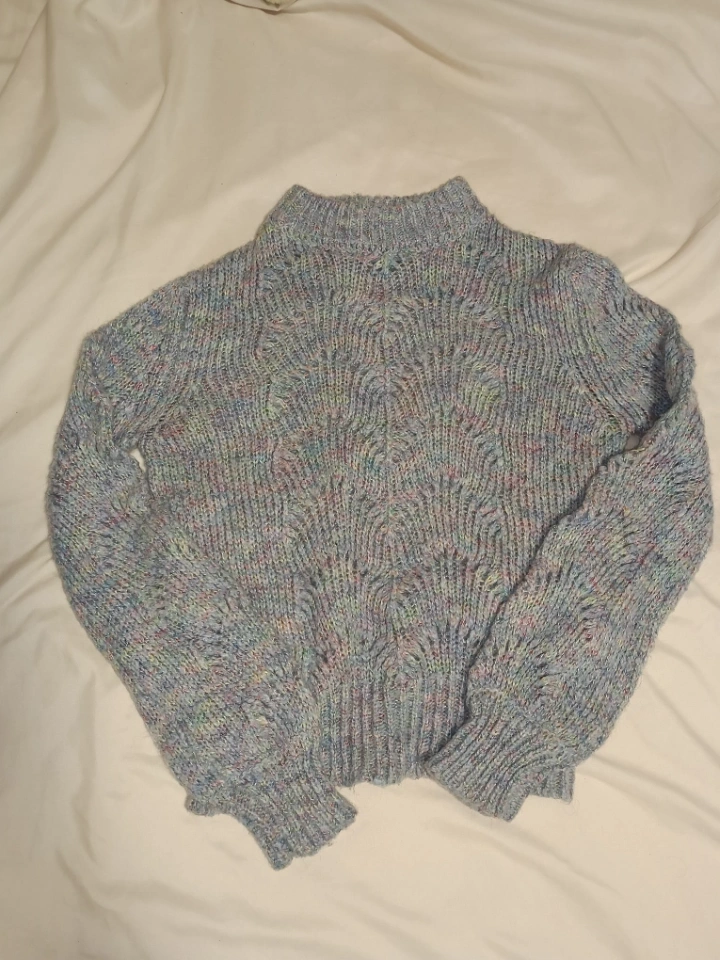Cute, colourful knit sweater. Size extra small. Soft material. Long sleeves. Mock neck.