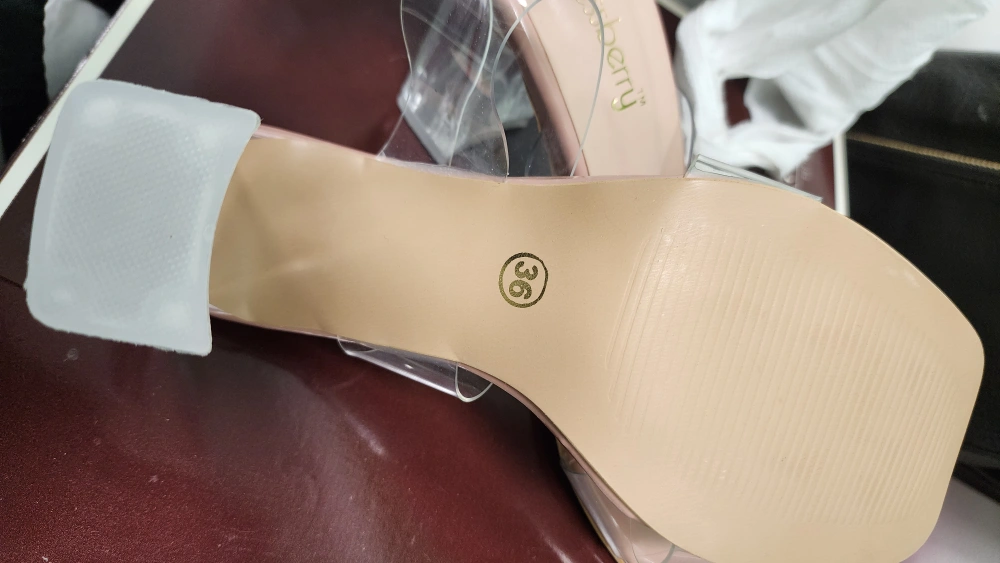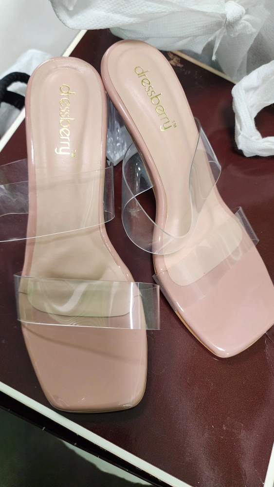 Blush pink heels with clear straps and block heel. Size 5.5 Like new condition.