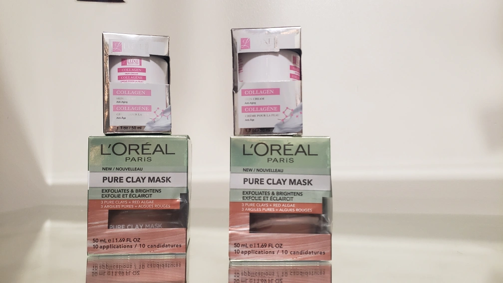 Brand new Two L'Oreal Paris Pure Clay Masks, exfoliates and brightens.Luxe Cream Collagen never used brand new for sale only each $28 for more info contact me anytime ๐ ๐