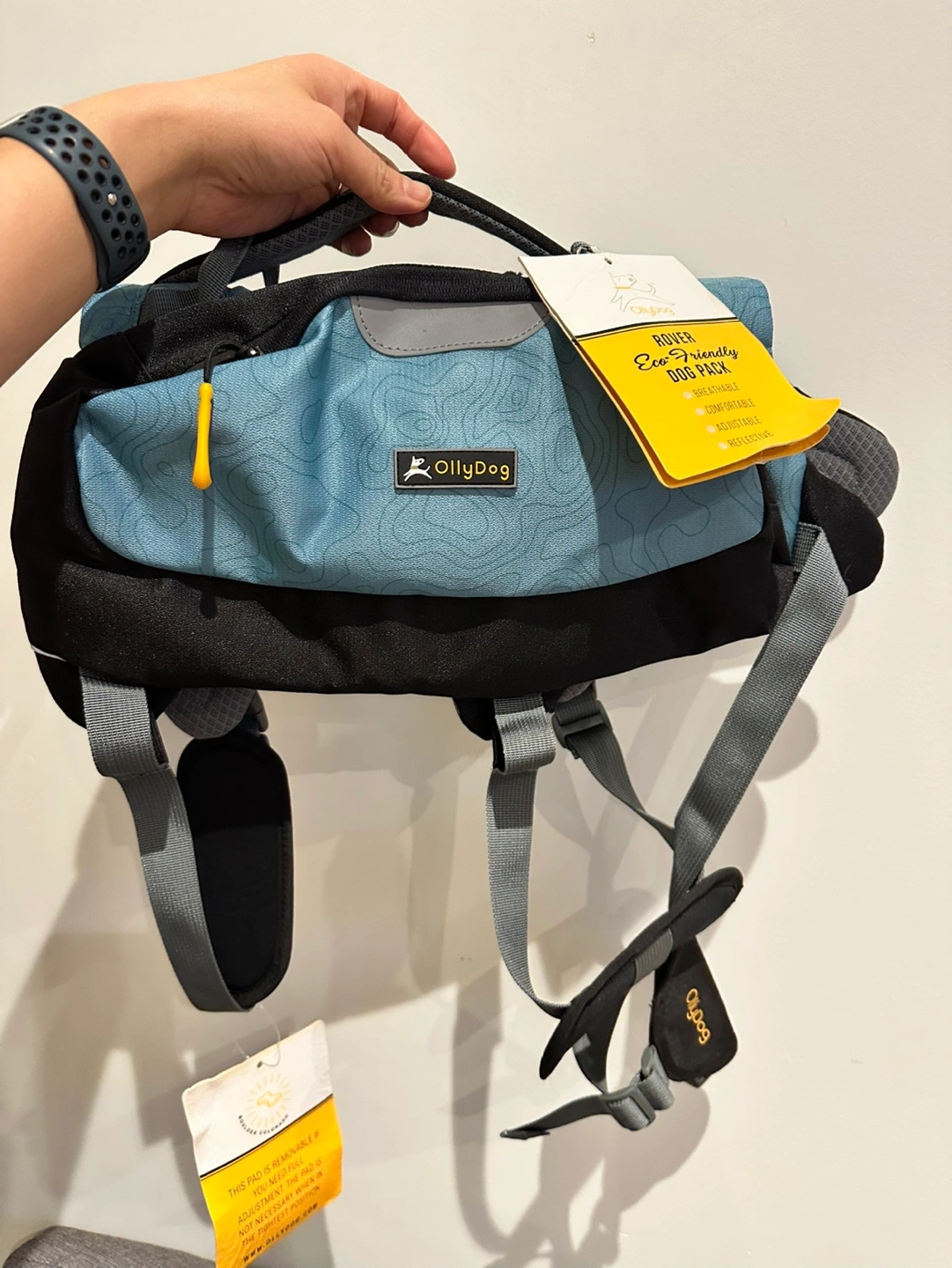 Brand new with tags! Purchased at REI in the States but never ended up using. Medium size. Adjustable straps. Two large pockets. Durable, eco-friendly materials. Great for hiking with your dog. Would make a nice gift. See fourth pic for sizing. Welcome to bring your dog to try on the pack to make sure it fits.