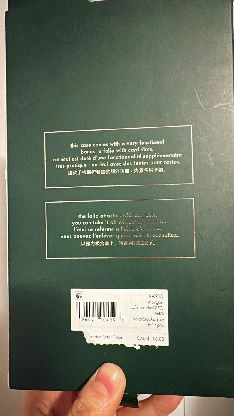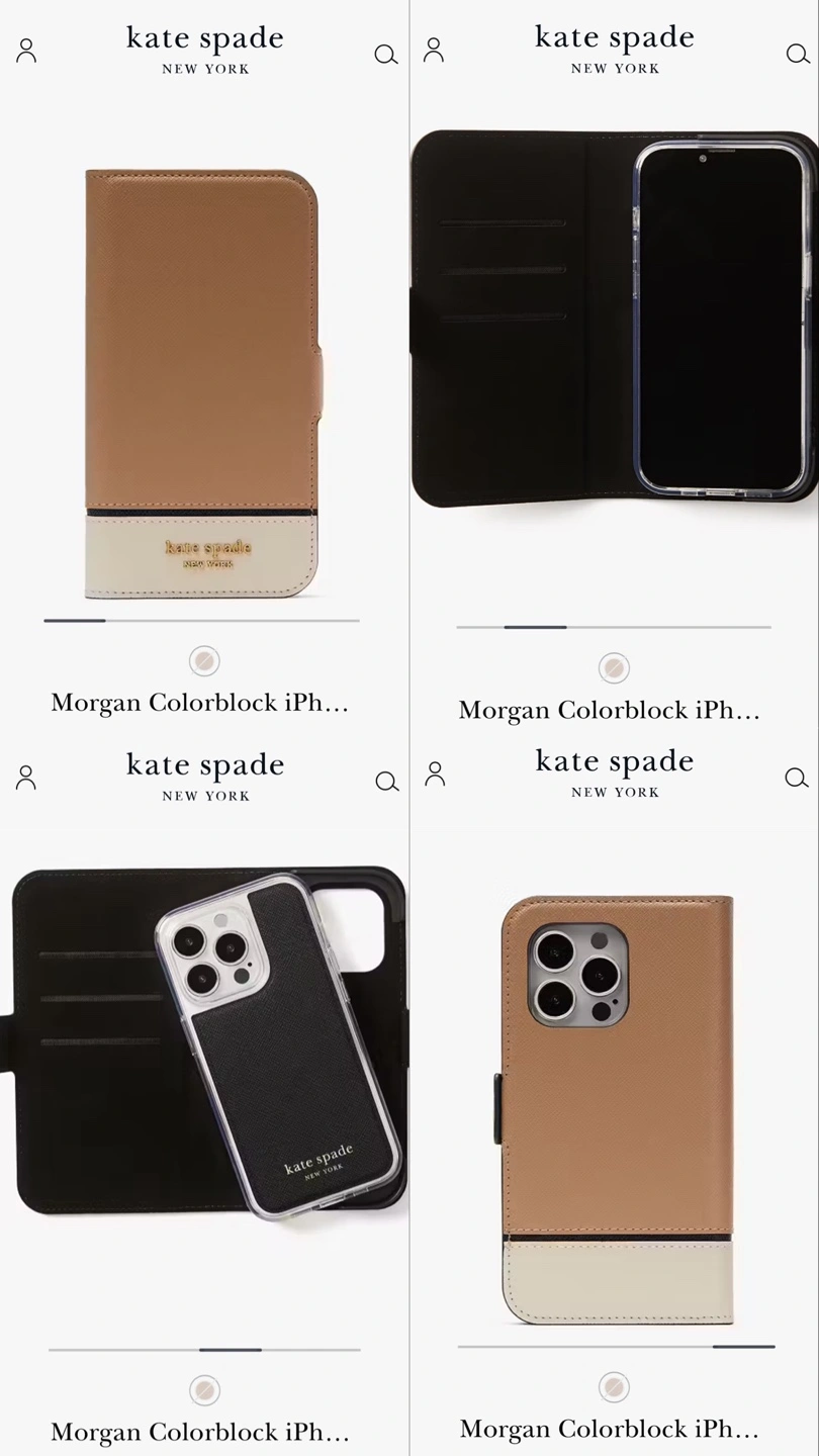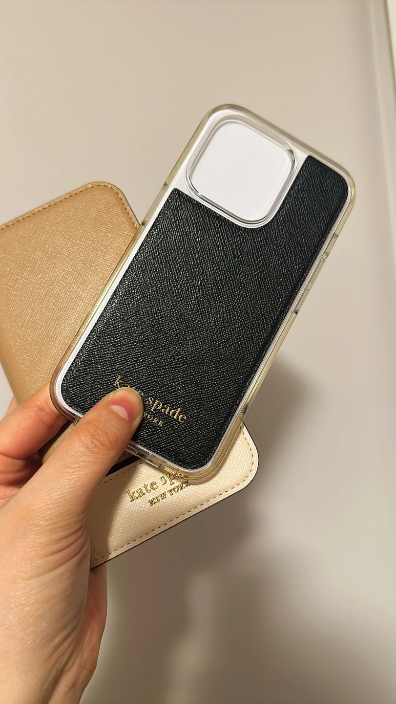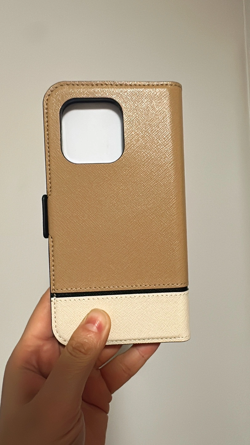 This is a magnetic wrap folio phone case in beige and light brown (mocha) colour for iPhone 14 Pro by Kate Spade. The wrap folio part can be separated when not in use as you can see in the photo, and it can be attached again with inserted magnets in the phone case. On the left side of the wallet, there are three slots in which you can place 3 cards of your choice. This item is like new. This would be a great gift for a member of a family, friend, or even for yourself! Retail price: $118.00 size: iPhone 14 Pro