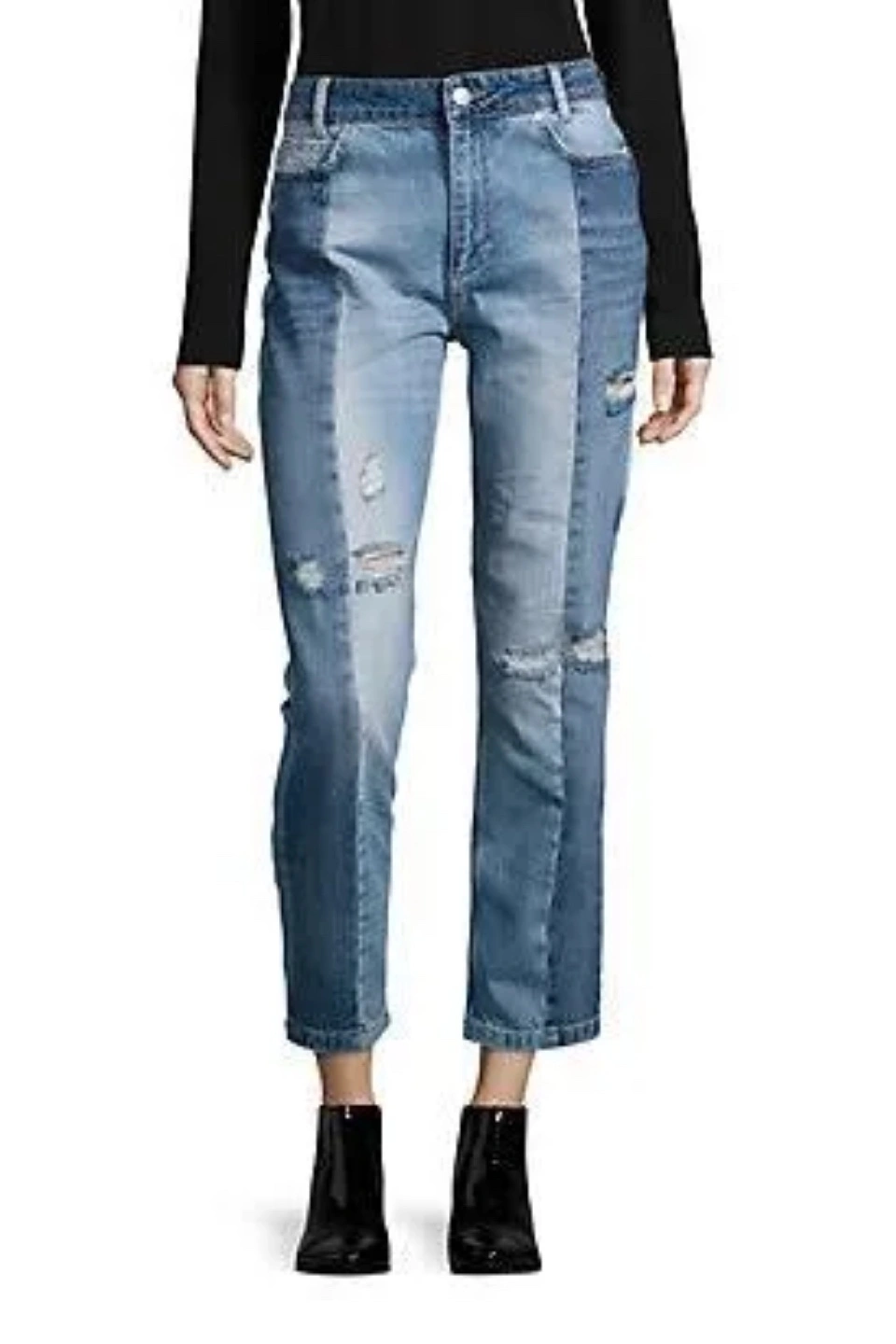 Worn once or twice. Still in very good condition. Paid $128 at the Bay Cotton distressed 2 tone slightly cropped denim Can be worn with booties, sandals or sneakers. Seasonal. Check out my other listings. Willing to trade as well Pick up Yorkdale or STC