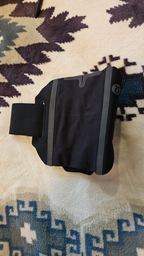 Black running belt. Adjustable strap. Great for carrying phone and other essentials. Small and lightweight.