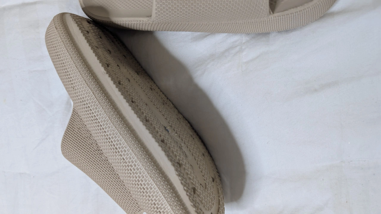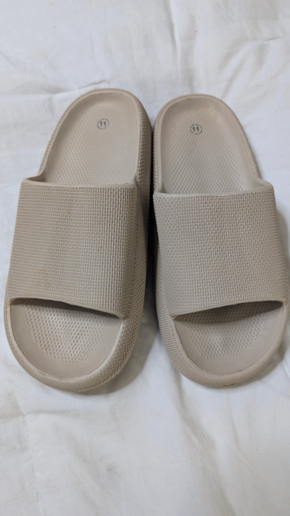 Pair of beige cloud slides. Size 11. Comfortable and lightweight. Great for summer.