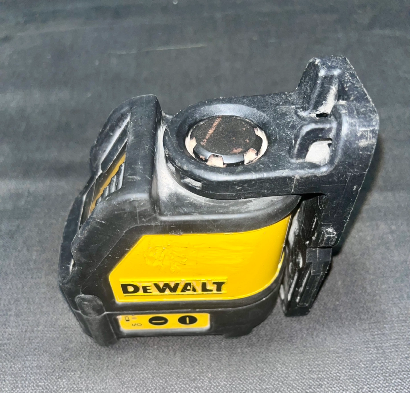 Compact laser level. Durable construction. Includes mounting bracket. Shows some minor wear.