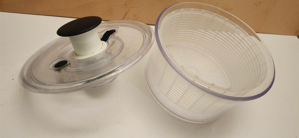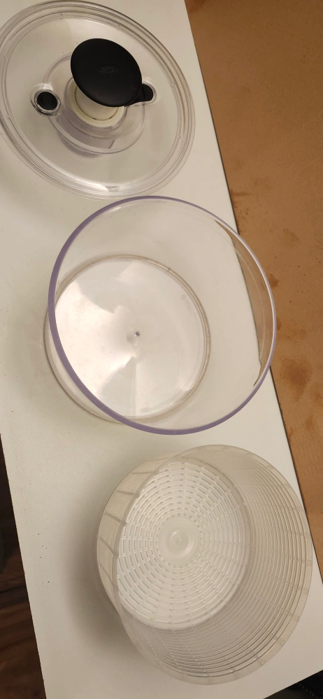 EXCELLENT CONDITION. medium size plastic salad spinner. Includes spinning bowl, basket, and lid. price only cash only pickup no delivery. 801 O'Connor drive outside TD Canada Trust bank door.