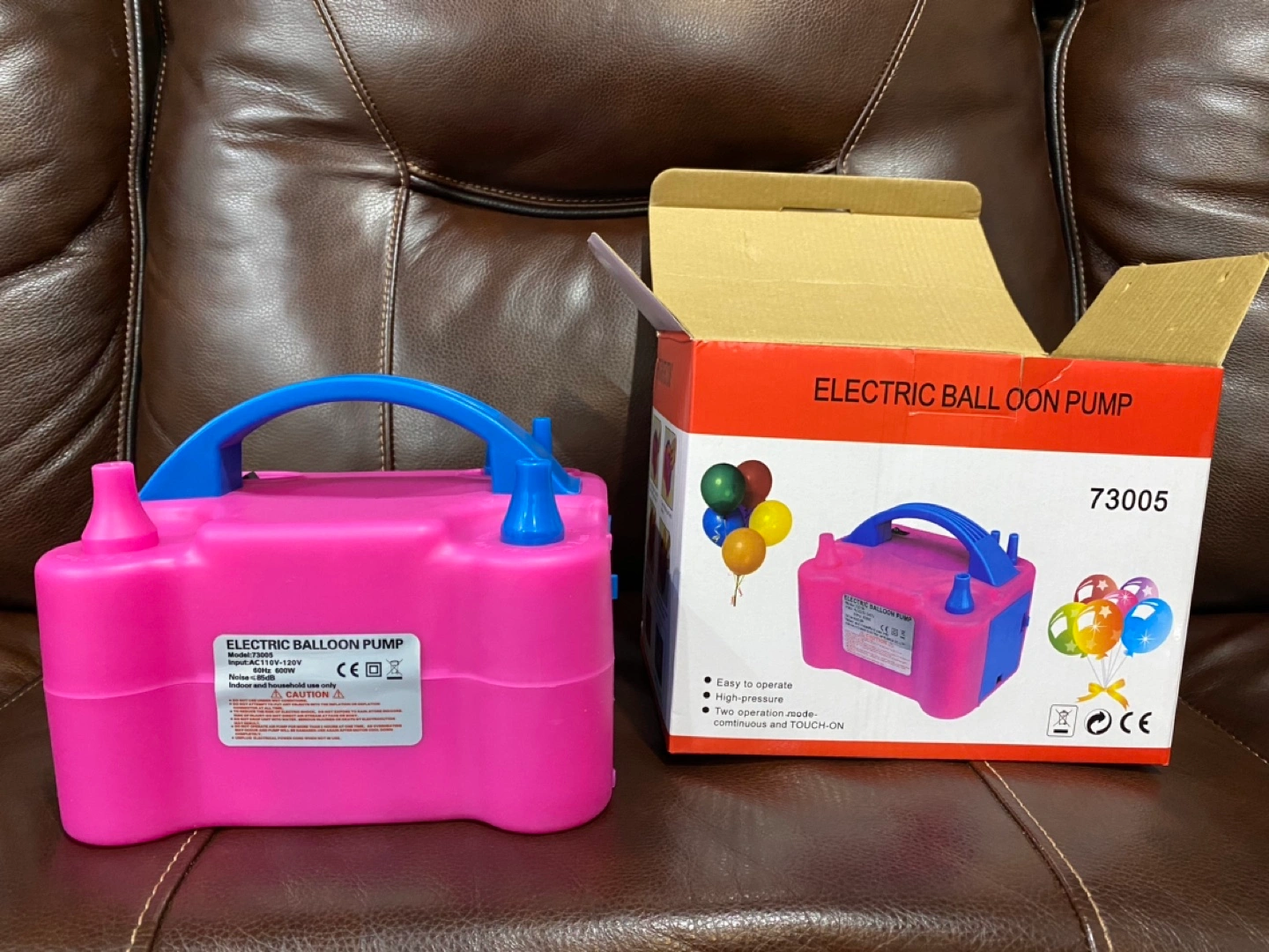 Portable electric balloon pump. Pink and blue plastic casing. Includes power cord. Great for parties and events. Model number 73005. For rent $5/day or $8/2 days ($20 deposit required) Pick up at 34th E Ave & Victoria Drive, Vancouver