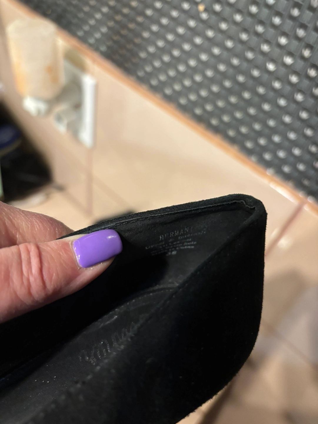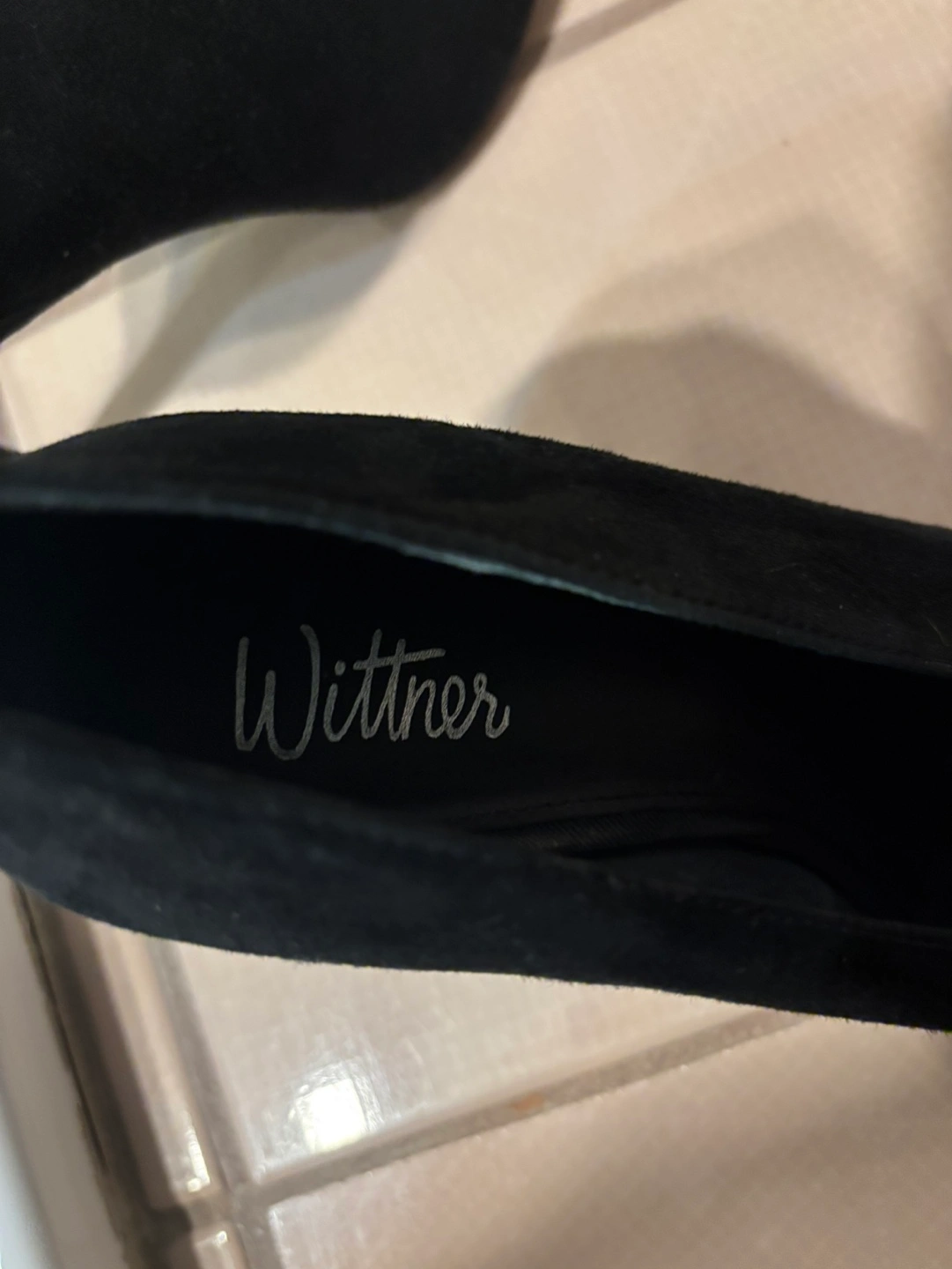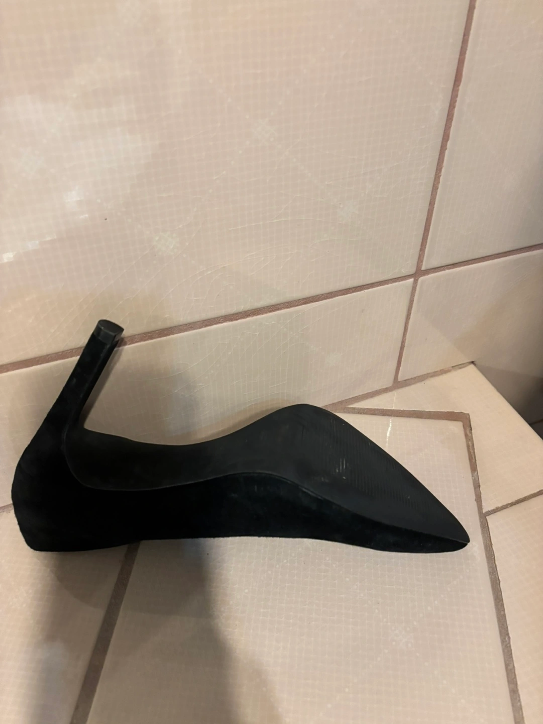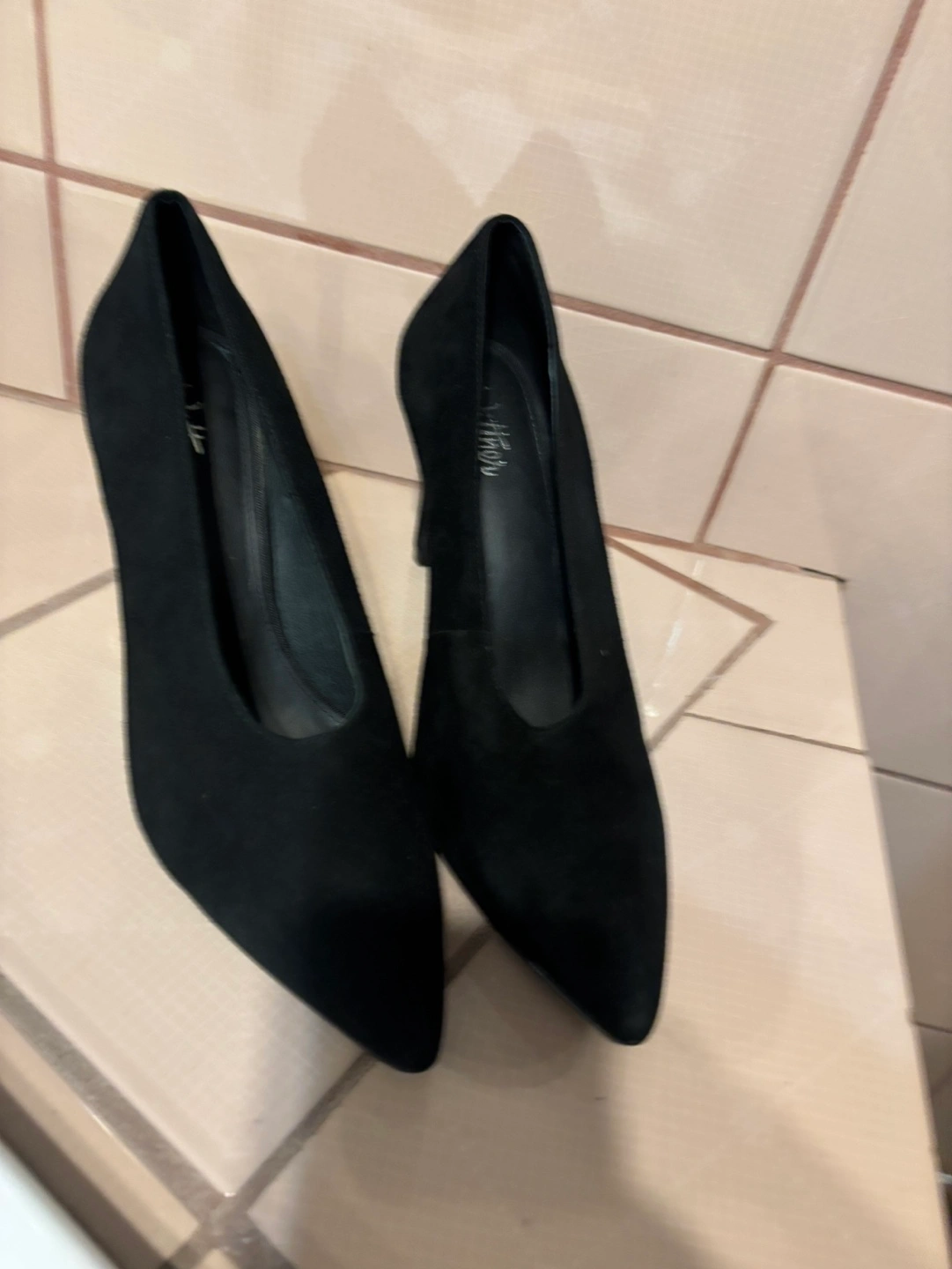 Black suede pointed-toe heels. Classic style, elegant look. Size 8.
