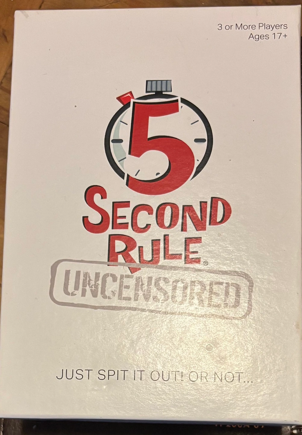 Party game for 3 or more players, ages 17+. Fast-paced fun. Just spit it out or not...