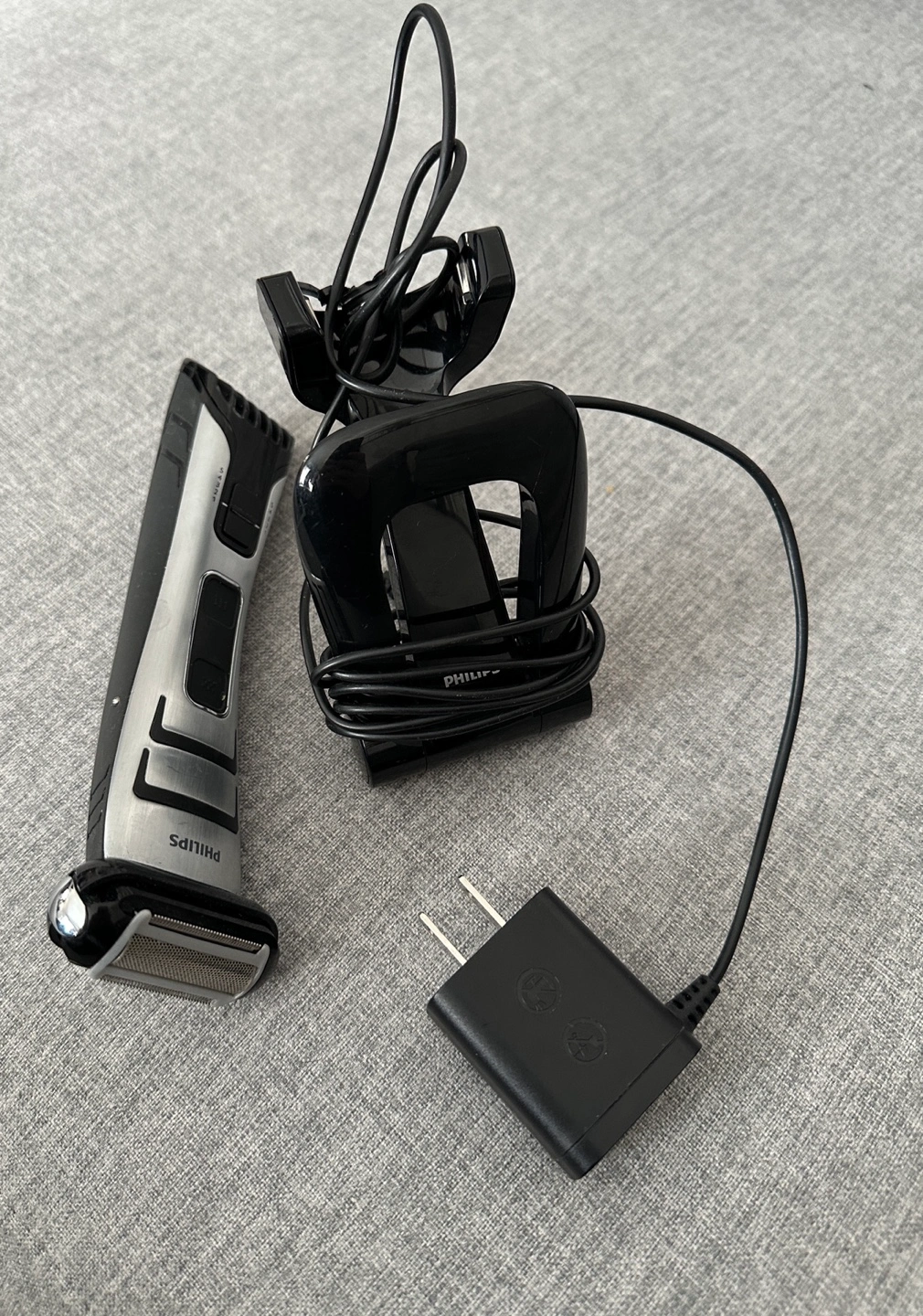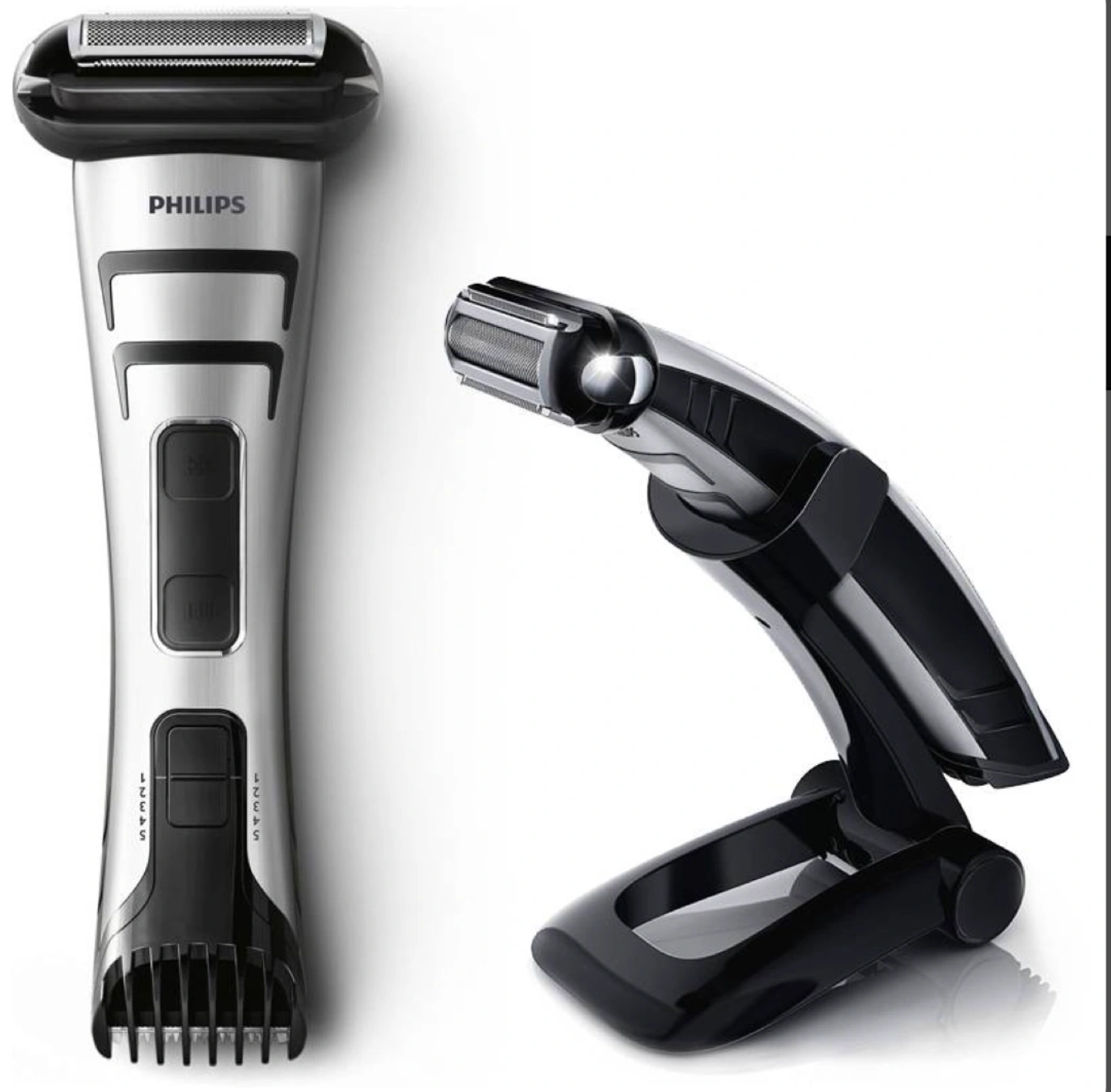 Excellent condition. Ultimate body grooming system for men, trims & shaves all body zones. Features Rechargeable bodygroom system with pivoting head for a close shave Use Wet or Dry - 100% waterproof Designed to safely shave and trim all body zones Perfect for: chest and abs, underarms, groin area, legs, back and shoulders Easy to clean - rinses under running tap water Automatic universal voltage (100-240V) 8 hour charging time for up to 50 minutes of use High performance trimmer with 5 integrated length settings 3-11 mm Maintenance-free blade requires no lubrication Hypoallergenic foil protects against nicks and cuts Includes convenient store and charge stand