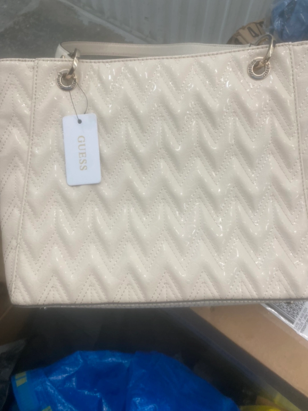 Cream-coloured tote bag. Features chevron quilting and gold-toned hardware. Shoulder straps included.